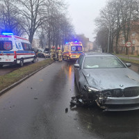 BMW i seat zderzyły się na ulicy Człuchowskiej w Chojnicach. Ten pierwszy samochód sam zaalarmował służby (FOTO)