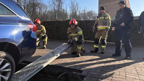 11:08"W zapadlisko tylnymi kołami wpadły dwa samochody". Akcja służb przy pensjonacie w rejonie człuchowskiego zamku