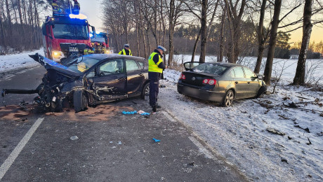 Zderzenie trzech aut na drodze wojewódzkiej 212 w okolicach Moszczenicy w gminie Chojnice (FOTO, AKTUALIZACJA)