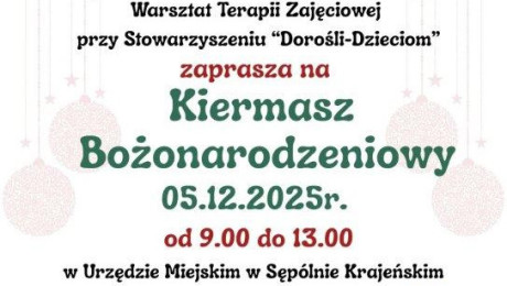 Warsztat Terapii Zajęciowej z Sępólna Krajeńskiego zaprasza w piątek 5 grudnia na doroczny kiermasz bożonarodzeniowy