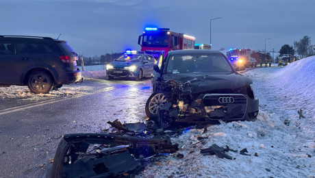 16:21Czołowe zderzenie na krajowej dwudziestce w Mokrzynie w gminie Bytów. Wśród rannych są dzieci