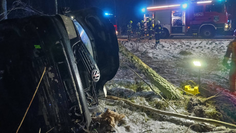 Dachowanie auta dostawczego w rejonie Lubiewic. Kierowca nie miał uprawnień. "Ustalono, że posiada dwa sądowe zakazy kierowania pojazdami"