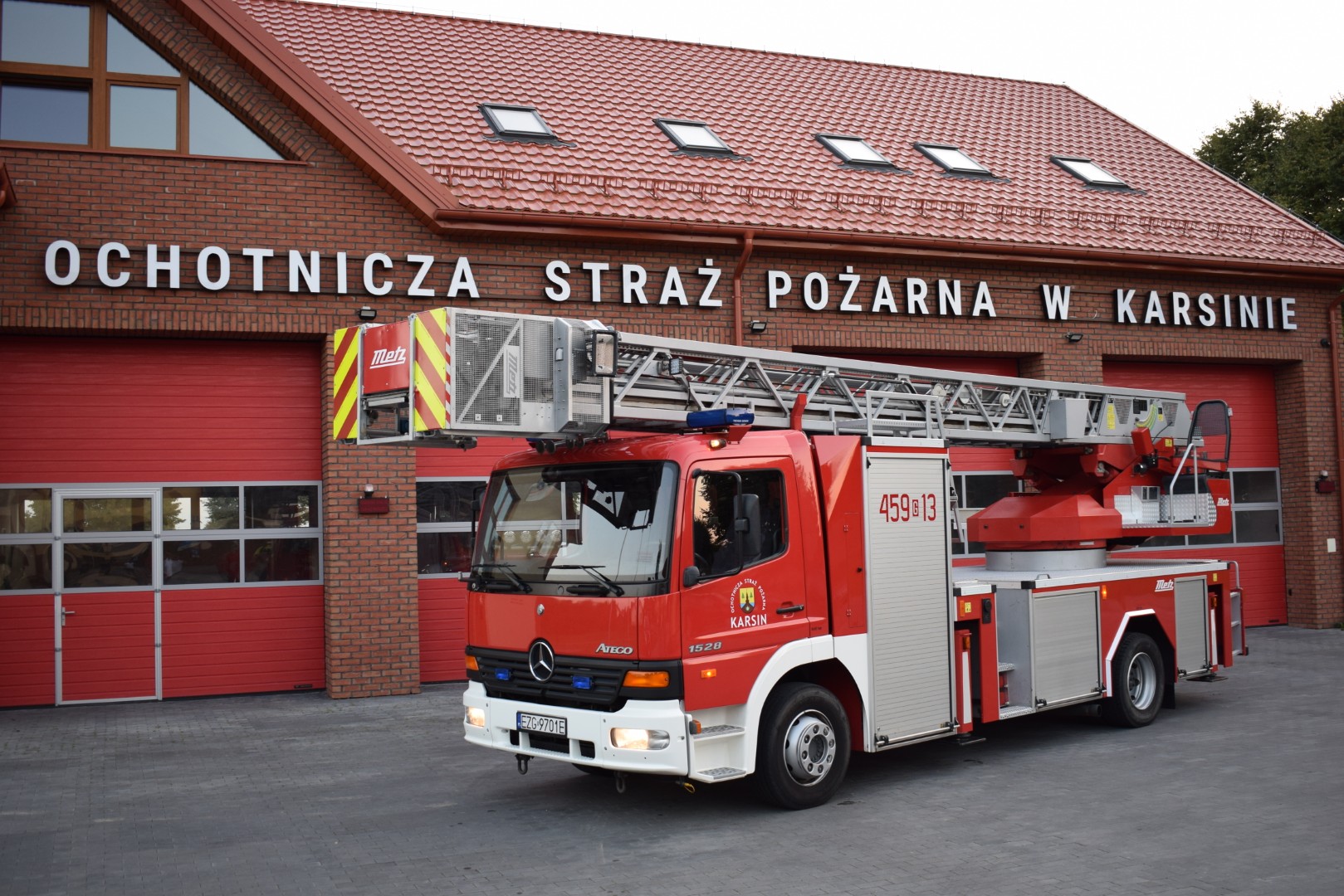 Strażacy z OSP w Karsinie mogą działać już na dużych wysokościach. Do jednostki trafił długo wyczekiwany wóz strażacki z 32 metrową drabiną na podwoziu Mercedes - Benz Atego.