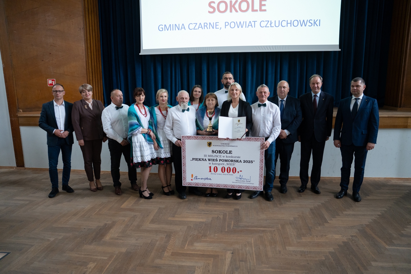 Sokole, w gminie Czarne z trzecim miejscem w konkursie Piękna Wieś Pomorska. Wyniki tegorocznej edycji zostały ogłoszone podczas gali w Urzędzie Marszałkowskim Województwa Pomorskiego. Przedstawiciele wsi odebrali tam symboliczny czek na 10 tys. zł.