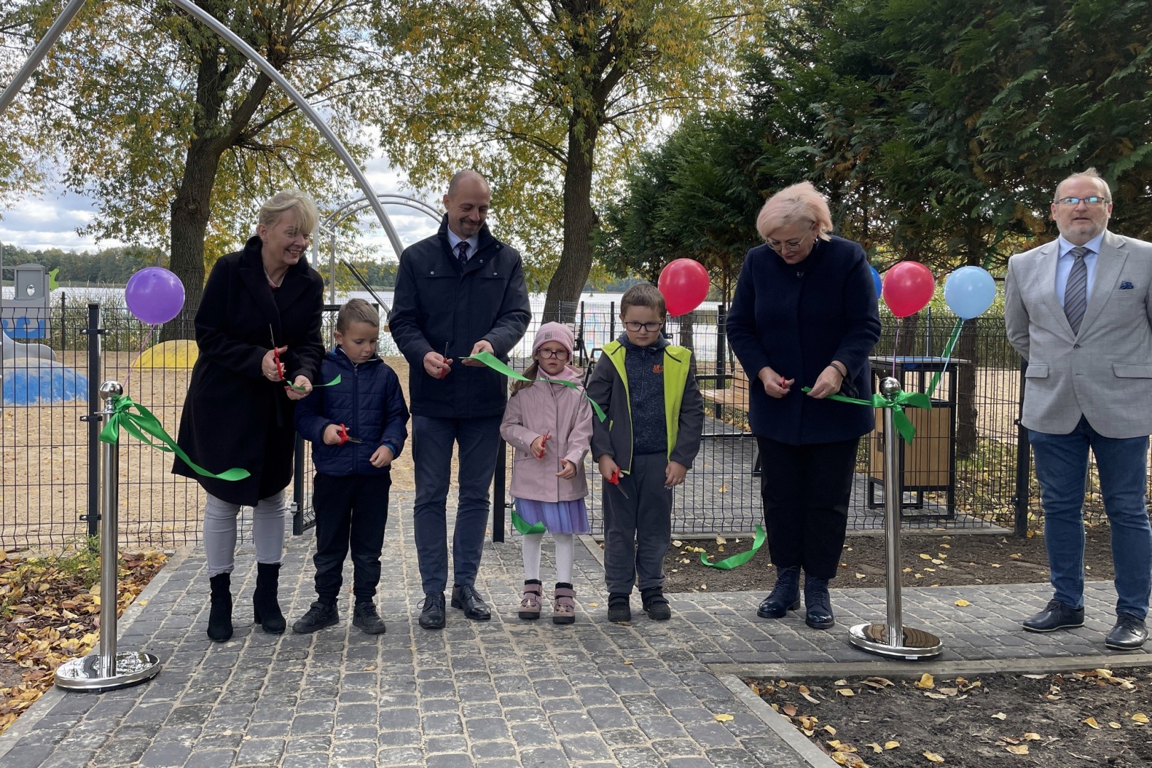 Plac zabaw to zdecydowanie najdroższa część tej inwestycji warta niemal 900 tysięcy złotych. W jej ramach utworzone zostały dwie strefy zabaw, tj. dla małych i tych nieco większych dzieci. Nawierzchnia jest z piasku, są również zupełnie nowe chodniki, ogrodzenia, urządzenia zabawowe oraz nowe nasadzenia drzew i krzewów ozdobnych. Podobnie ma się skwer łączący promenadę z ulicą Strzelecką, który został gruntownie przebudowany i w niczym nie przypomina skweru sprzed kilku miesięcy. Ostatnią częścią tej inwestycji, dofinansowanej z polityki terytorialnej Unii Europejskiej jest mural w centrum miasta, z postacią generała Józefa Hallera na tle Jeziora Więcborskiego.