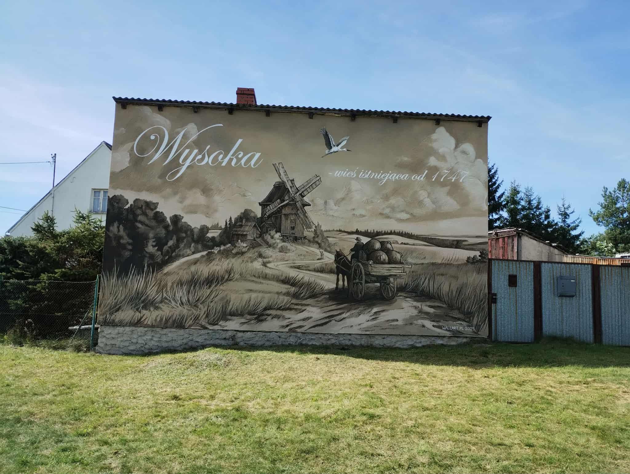 Pierwszy powstał w Wierzchucinie, a najnowszy zdobi ścianę domu w Wysokiej. Powstał kolejny mural na terenie sołectwa. Nawiązuje do historii wsi, konkretnie do istniejącego tu dawniej młyna.
