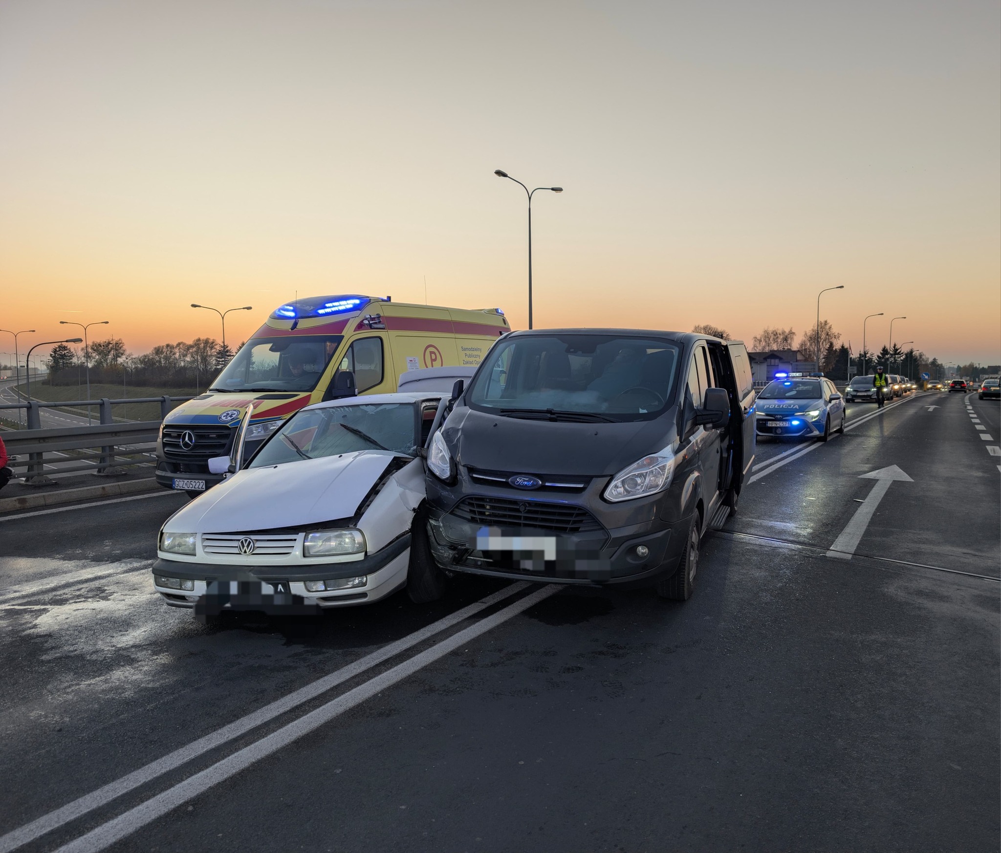 Wypadek w Pawłówku. "Kierowca volkswagena podczas zmiany pasa ruchu zderzył się z jadącym w tym samym kierunku fordem."