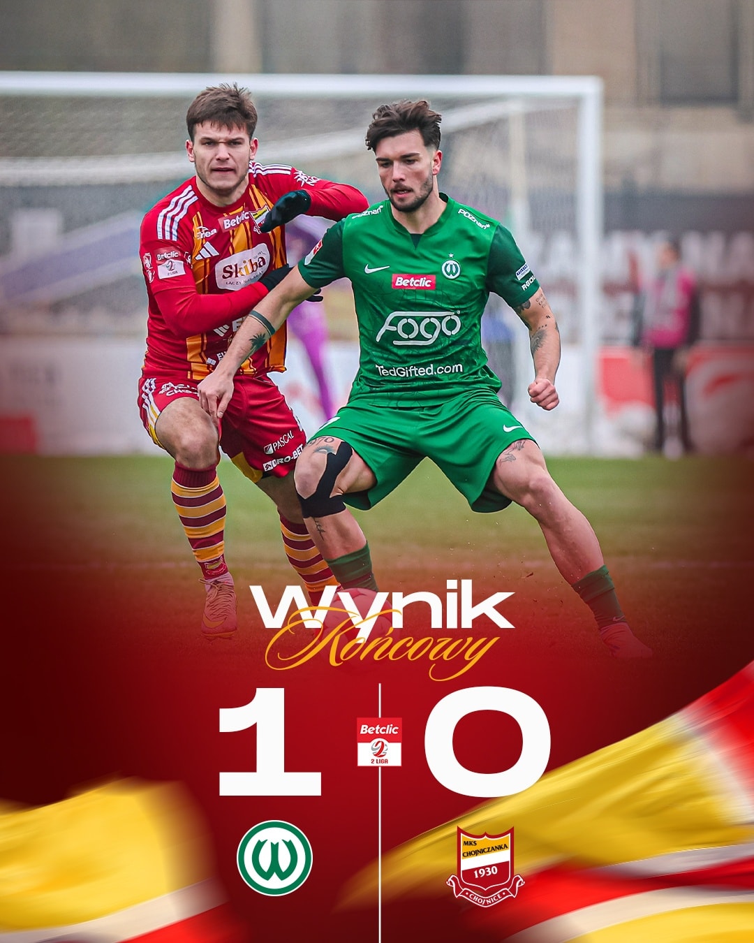 Chojniczanka: Damian Primel - Jakub Goliński, Yukhymowych (56 Maksymilian Tkocz), Oleksii Bykov (75 Błażej Szczepanek) - Mateusz Bąkowicz (72 Konrad Gutowski), Patryk Olejnik, Damian Nowacki (46 Joao Guilherme), Damian Michalik, Bartłomiej Eizenchart - Valerijs Sabala, Marcin Kozina (72 Maciej Firlej). Trener: Marek Brzozowski.