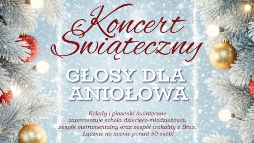 W Chojnickim Centrum Kultury będzie można wysłuchać najpiękniejszych kolęd i pastorałek. Podczas koncertu "Głosy dla Aniołowa" wystąpi Schola Parafialna z Brus. Muzycy podziękują pracownikom hospicjum TPH "Aniołowo" oraz uświetnią 20-lecie działalności tego stowarzyszenia. Koncert zaplanowany na czwartek 11 grudnia będzie też okazją do wsparcia organizacji.
