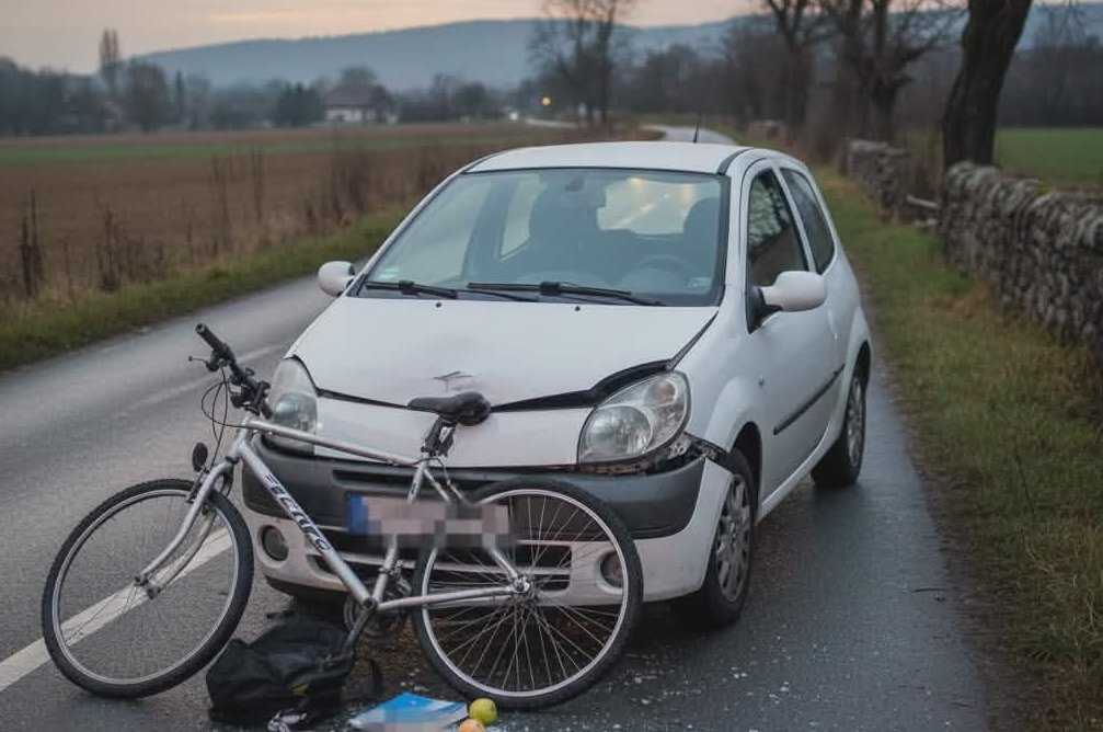 W Nowej Karczmie auto uderzyło w rowerzystę. Na szczęście mężczyzna nie odniósł obrażeń