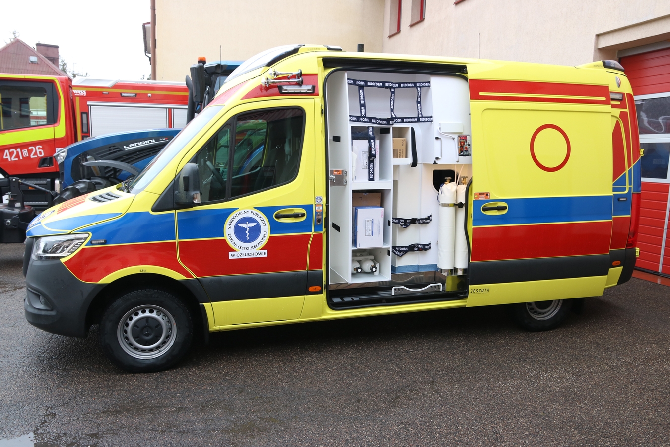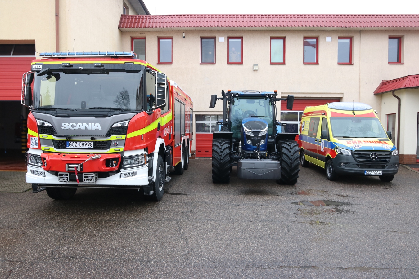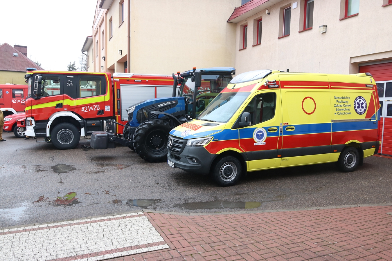 Nowe pojazdy za blisko 3,5 mln zł dla służb w Człuchowie: wóz dla strażaków, karetka dla szpitala i ciągnik dla drogowców (FOTO)