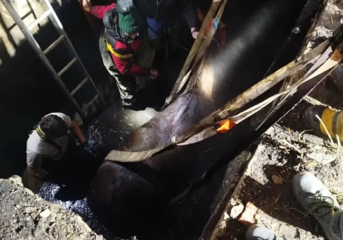 Jak informuje powiatowa straż pożarna, koń spłoszył się na wybiegu jednej ze stajni i wpadł do głębokiego na 4 metry zbiornika z nieczystościami. Przybyli na miejsce strażacy wraz z lekarzem weterynarii uspokoili zwierzę i podali leki, po czym koń został wyciągnięty przy pomocy ciężkiego sprzętu właściciela stajni.