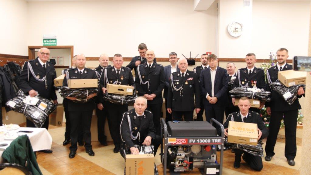 Przedstawiciele wszystkich jednostek OSP w gminie Chojnice, władze i koledzy z PSP składali sobie świąteczne życzenia. W świetlicy wiejskiej w Kłodawie odbyło się spotkanie opłatkowe. Były też gwiazdkowe prezenty, czyli oficjalne przekazanie sprzętu zakupionego w ramach środków na ochronę ludności i życzenia: