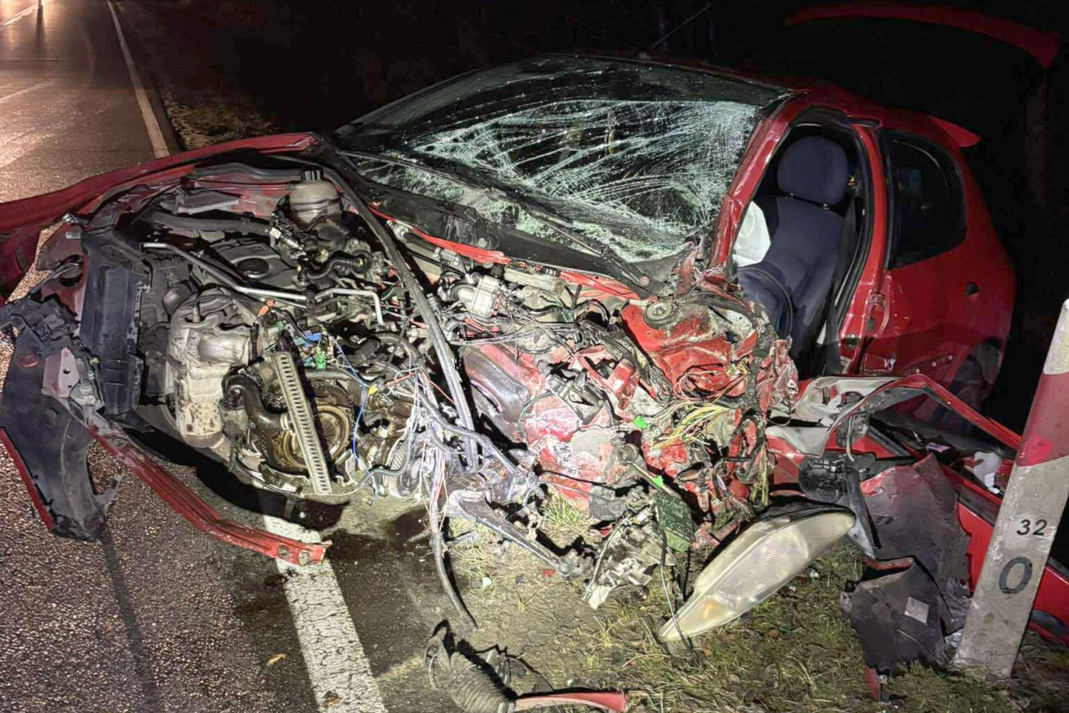 34-letni obywatel Kolumbii na łuku drogi nie dostosował prędkości do warunków drogowych, zjechał na lewe pobocze, gdzie uderzył w drzewo. W wyniku tego uderzenia jego pasażer, 25-latek, doznał urazu nogi, więc został przewieziony do szpitala. W trakcie legitymowania tego kierowcy okazało się dodatkowo, że nie posiada on uprawnień do kierowania pojazdami.