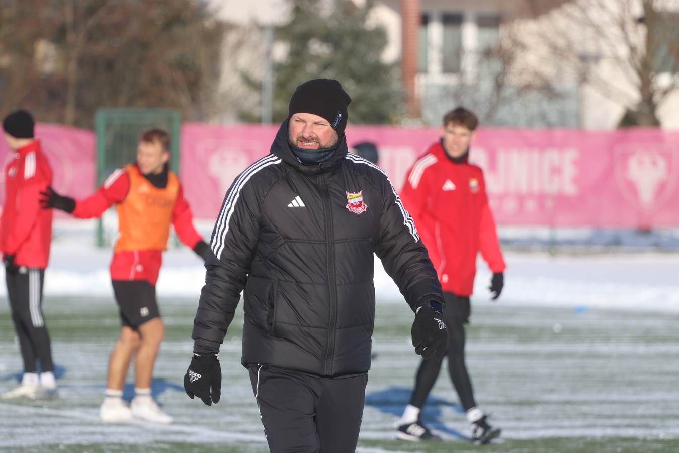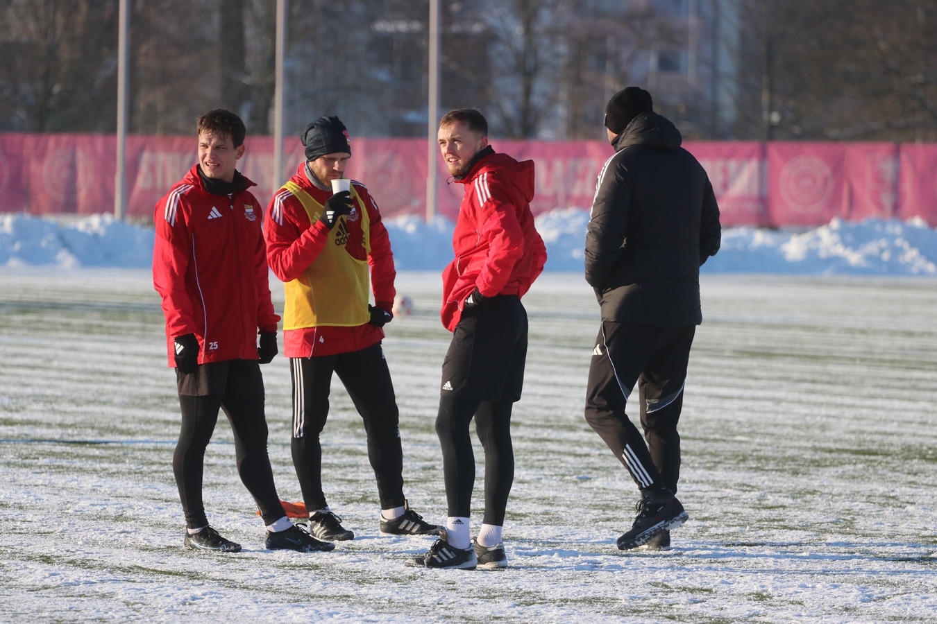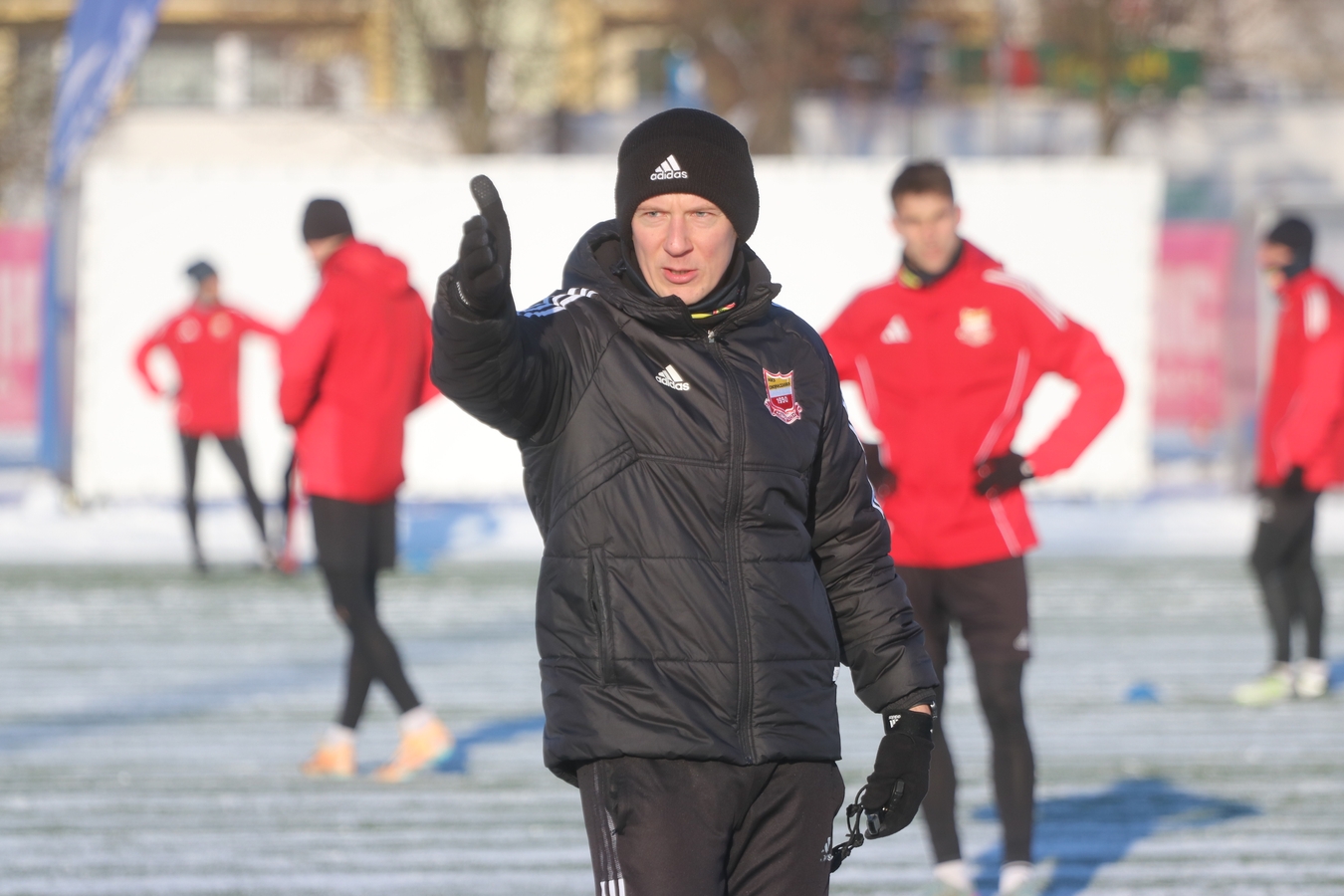 Trening wprowadzający. Chcieliśmy zobaczyć w jakiej dyspozycji drużyna wróciła. Trudne warunki, ale bardzo dobre nastawienie. I tutaj pomimo trudnych warunków - szczególnie ta grupa ofensywna na bardzo dobrym poziomie - więc wracamy z treningu z uśmiechem.