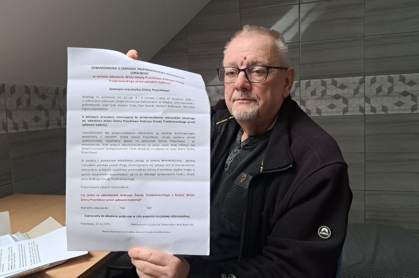 W okresie świąteczno-norowocznym akcja toczyła się leniwie, ale teraz rusza pełną parą. Przyspiesza zbieranie podpisów poparcia dla inicjatywy zwołania referendum w sprawie odwołania wójta gminy Przechlewo. Jak mówiliśmy już w Weekend FM, powstała sześcioosobowa grupa inicjatywna, która chce pozbawić stanowiska Andrzeja Żmudę Trzebiatowskiego.