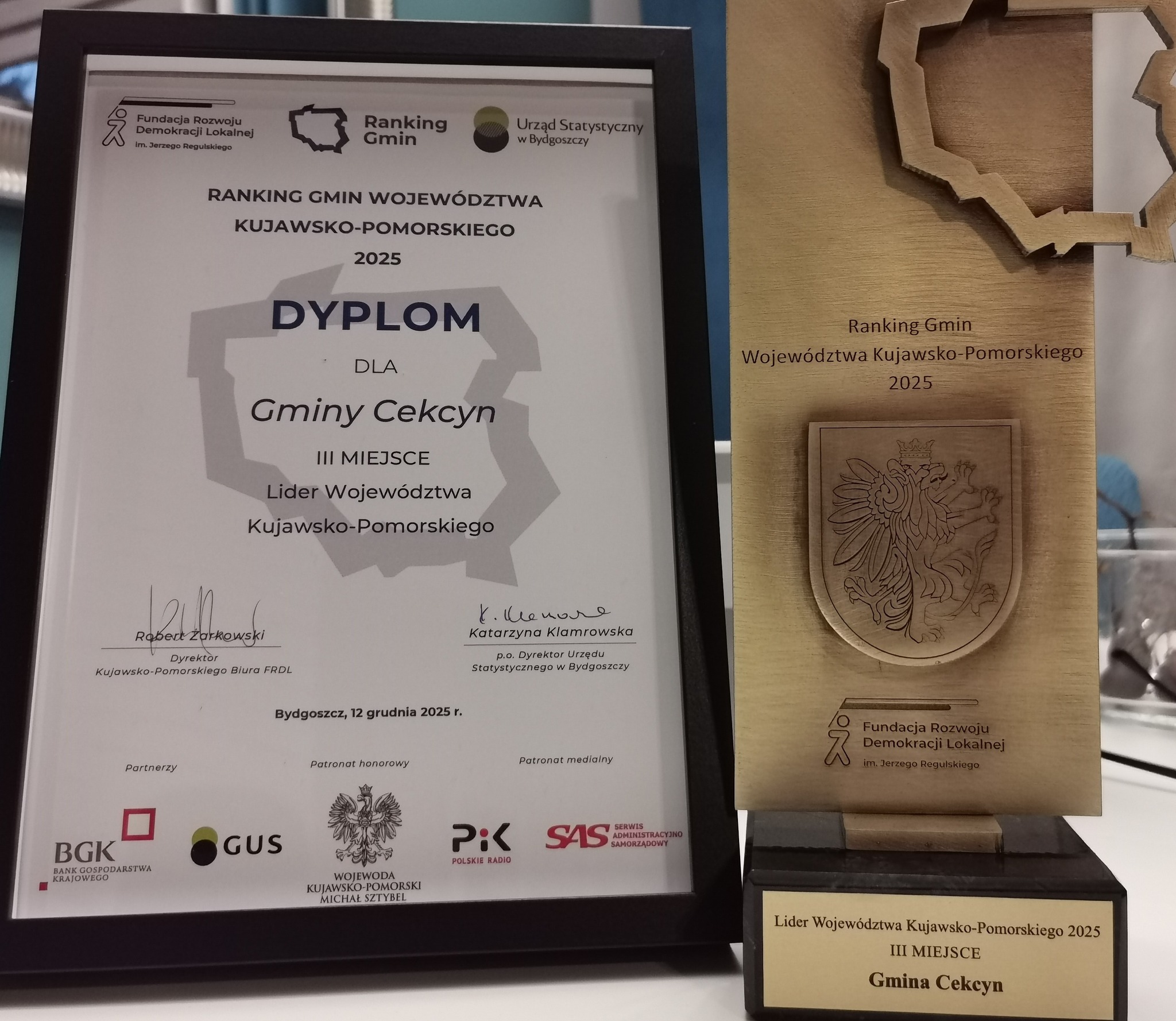 Cekcyn wysoko w rankingu gmin województwa kujawsko-pomorskiego. Ma trzecie miejsce w kategorii "Lider województwa"