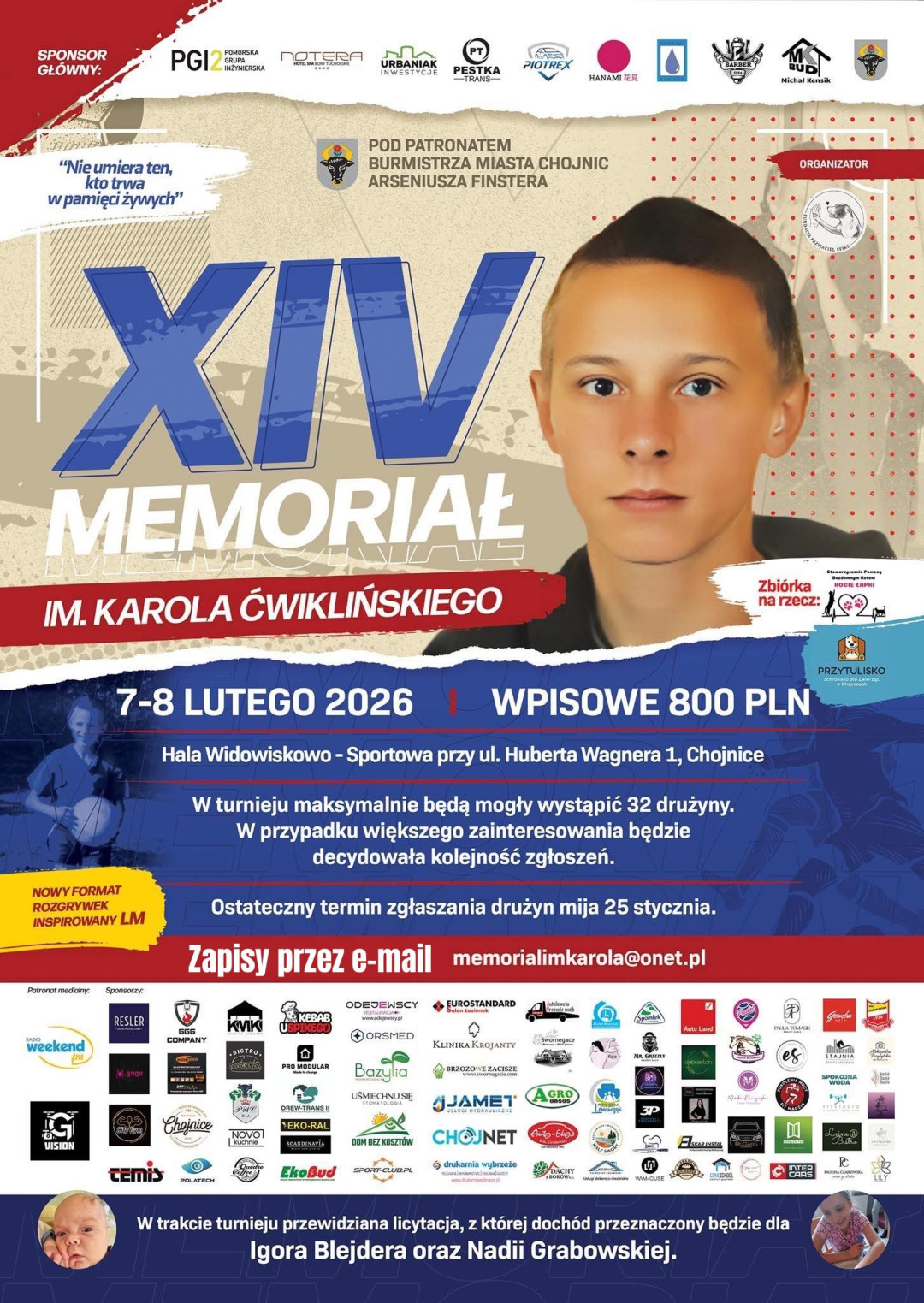 Zwolniły się dwa miejsca dla drużyn, które chcą wziąć udział w 14. edycji Memoriału Karola Ćwiklińskiego w Chojnicach. To charytatywny turnieju futsalowy, organizowany ku pamięci tragicznie zmarłego w 2008 roku bramkarza juniorów Red Devils Chojnice.