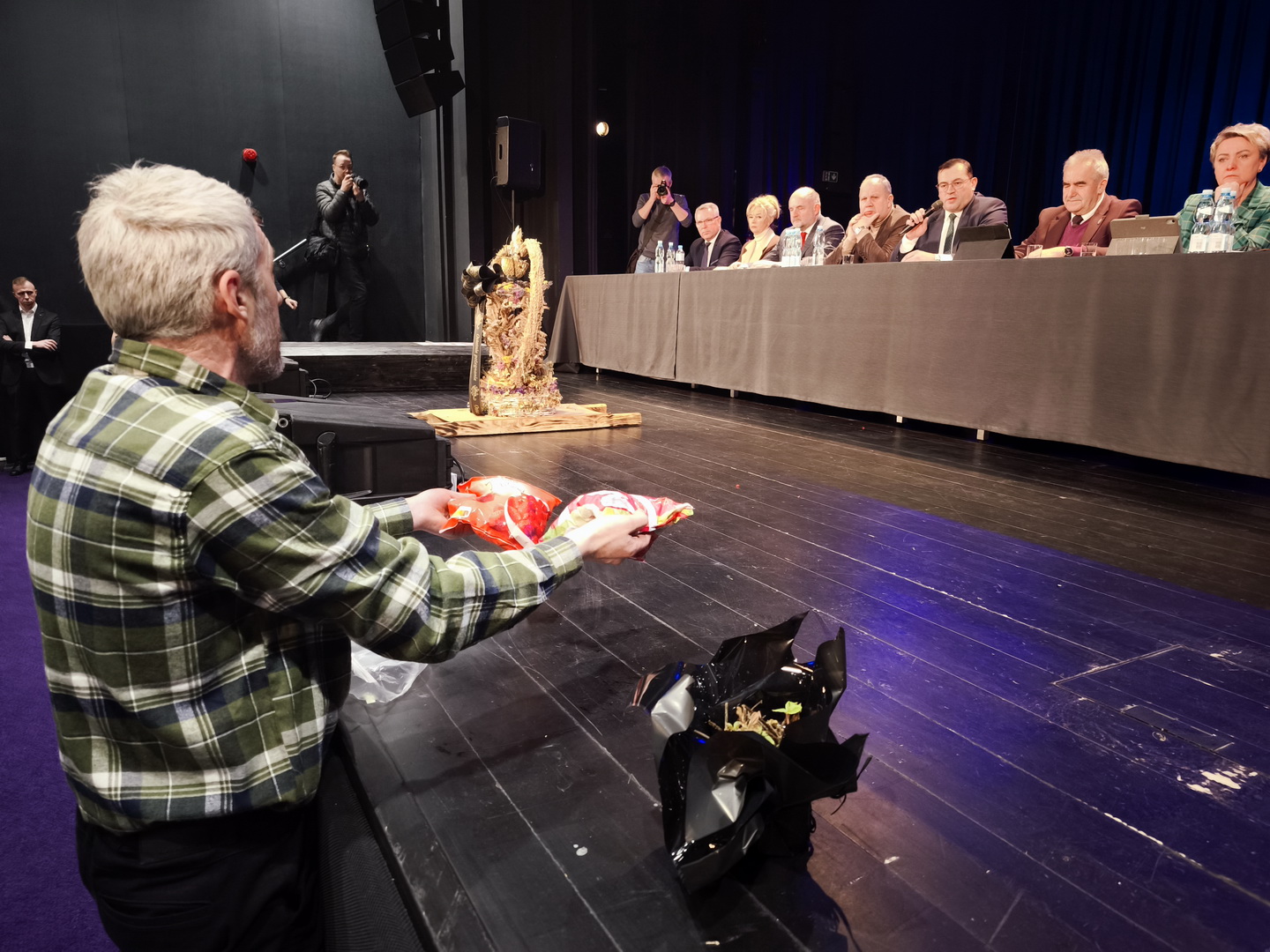 Przed spotkaniem w ramach protestu po Sępólnie krążyło kilka oflagowanych ciągników, a na spotkanie rolnicy przynieśli między innymi trumnę symbolizującą śmierć polskiego rolnictwa. Dyskusja na sali widowiskowej Centrum Kultury i Sztuki toczyła się wokół umowy handlowej z państwami Mercosur, ale nie tylko. Przysłuchiwał się jej nasz sępoleński reporter Maciej Bór.