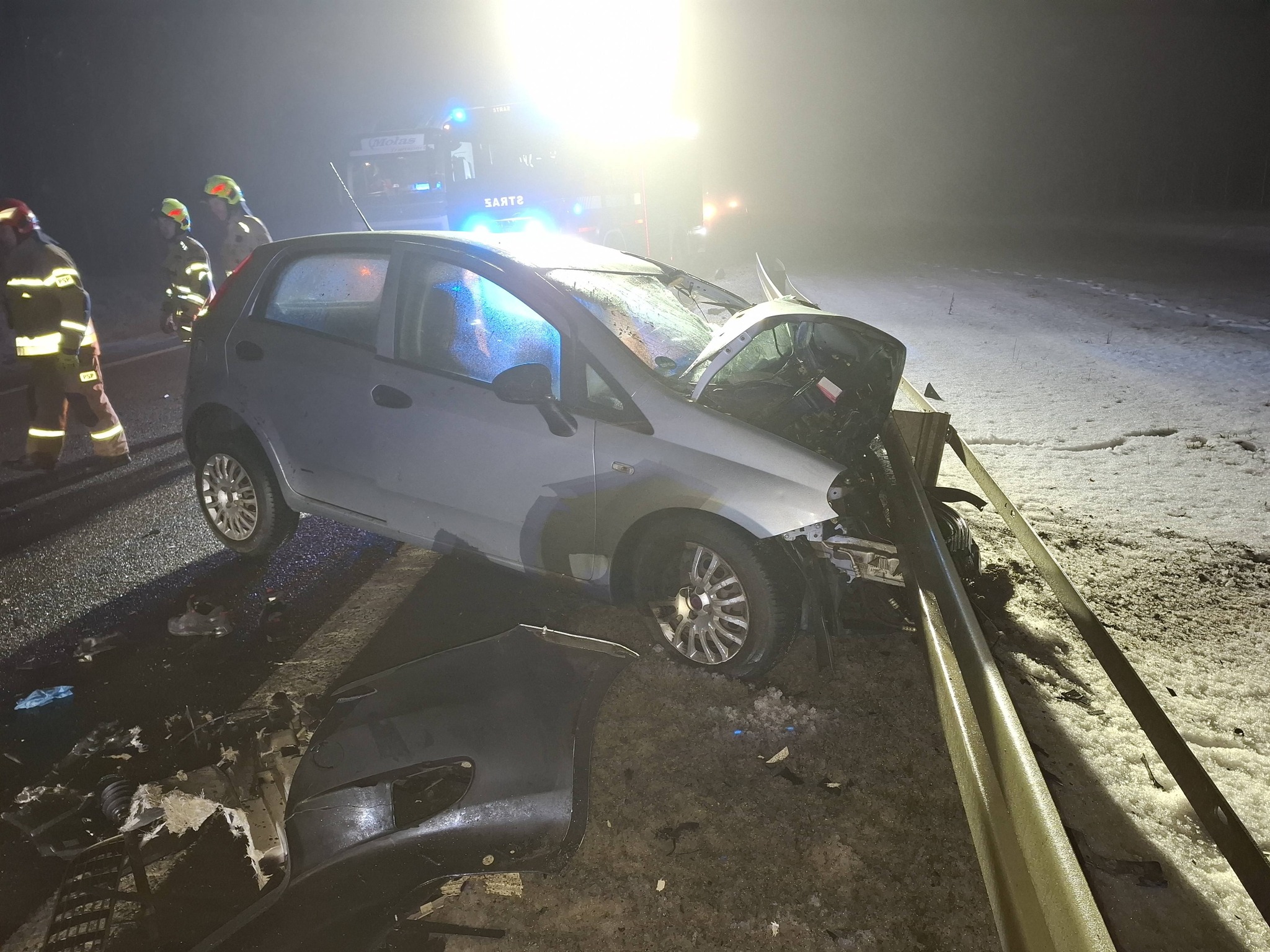 Ze wstępnych ustaleń policjantów wynika, że 40-latek, kierując samochodem osobowym marki Fiat, jadąc w kierunku Człuchowa z niewyjaśnionych przyczyn zjechał na przeciwległy pas ruchu, w wyniku czego najechał na prawidłowo jadący samochód ciężarowy marki Renault, którym kierował 53-latek, a następnie uderzył barierę ochronną.
