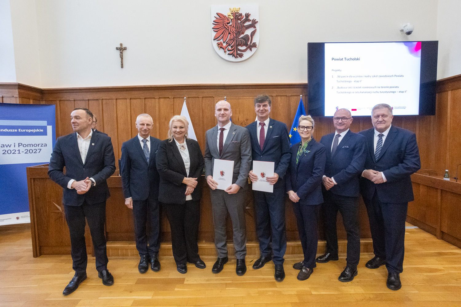Mają oficjalne potwierdzenie zawarcia umów w ramach Funduszy Europejskich - powiat tucholski z unijnym dofinansowaniem na dwa projekty. Jeden dotyczy budowy ścieżki rowerowej do Białowieży. Na ten trakt w gminie Tuchola powiat otrzymał 1,5 mln zł wsparcia.