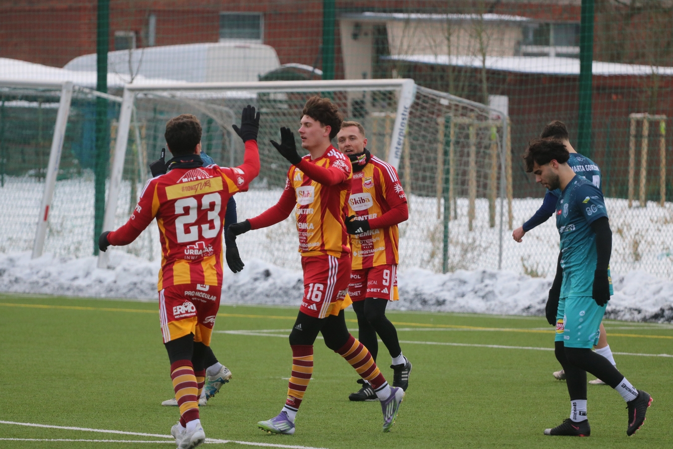 Mecz rozgrywany był na Modraku II. Po jednej bramce dla chojnickiego zespołu zdobyli Mateusz Bąkowicz i Jakub Żywicki bezpośrednio z rzutu rożnego, a dwa trafienia w swoje 20. urodziny zaliczył Jakub Oleksiewicz. Po dwóch zimowych sparingach ma na koncie już trzy gole.