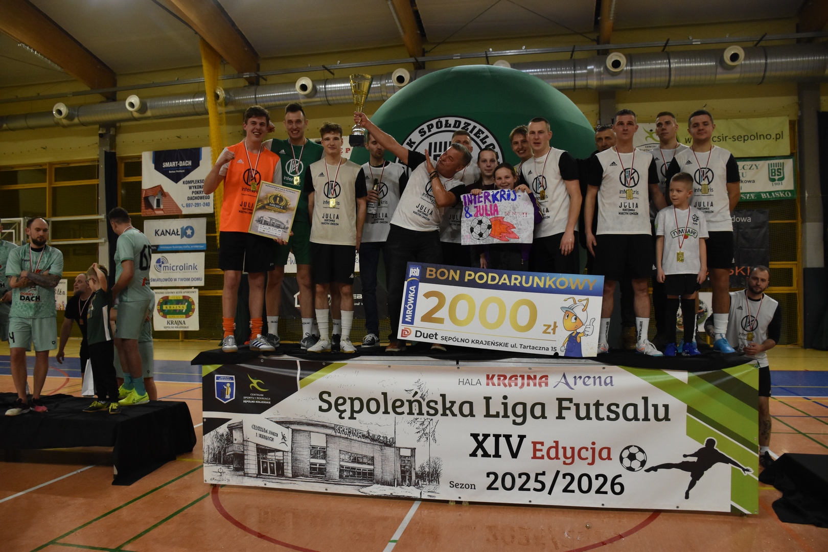 InterKris & Julia mistrzem, Dobry Dach – Pap Dach z pucharem. To najważniejsze rozstrzygnięcia zakończonej w weekend IX edycji Sępoleńskiej Ligi Futsalu. Przez 2 miesiące na hali sportowej Krajna Arena 10 drużyn rywalizowało w rozgrywkach ligowych oraz o puchar Ligi. Najlepszym bramkarzem turnieju został Sebastian Kartuszyński, najlepszym strzelcem Jakub Dziarnowski, a MVP turnieju Łukasz Kozina. Mistrza ligi poznaliśmy już przed tygodniem, a w ten weekend zakończone zostały rozgrywki pucharowe.