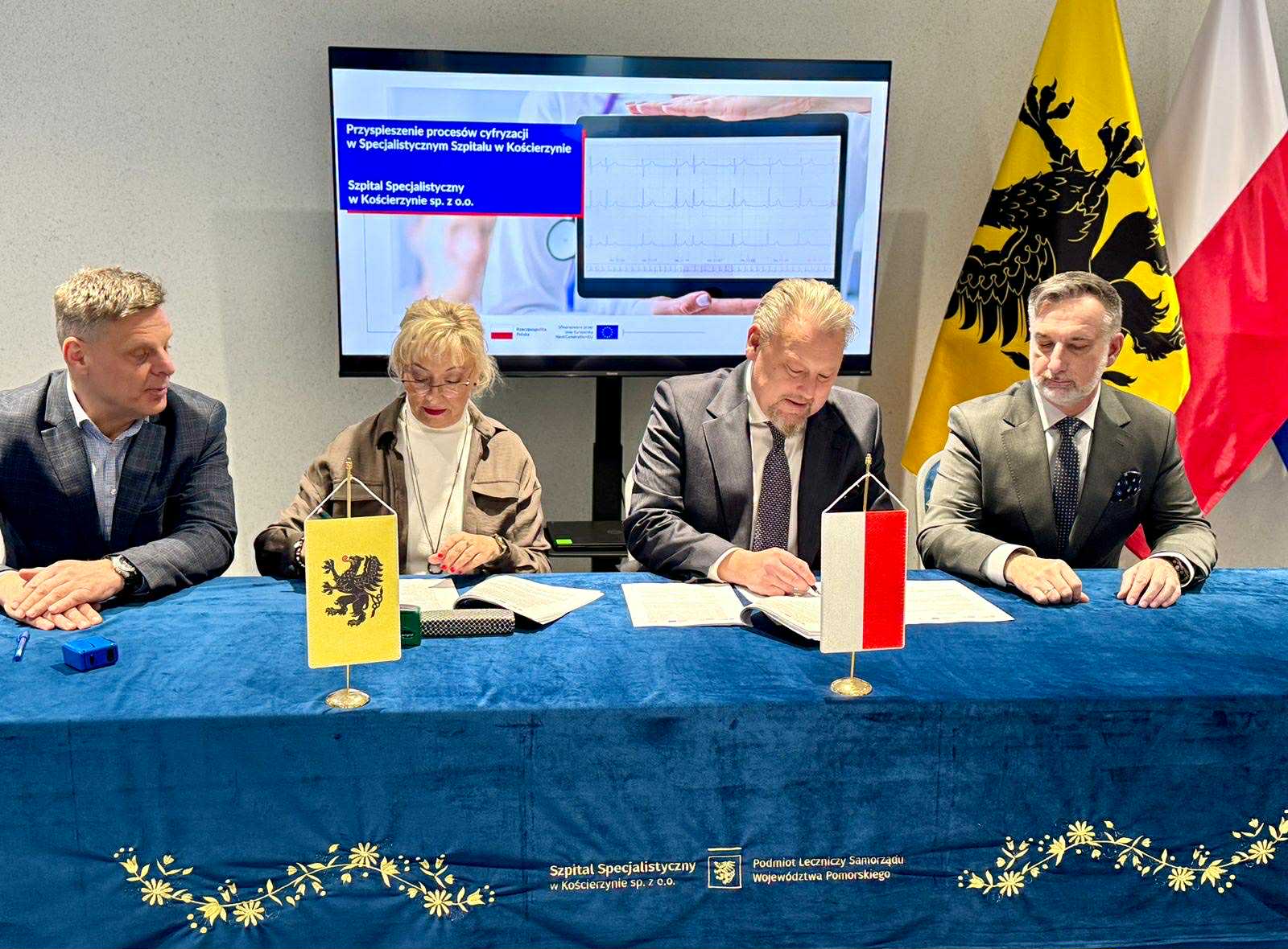 Realizacja procesu cyfryzacji w kościerskim szpitalu ma zakończyć się z końcem maja tego roku. Dodajmy, że wczoraj (28.01.) przedstawiciele szpitala podpisali pierwszą umowę z wykonawcą zadania w ramach projektu finansowanego z KPO. Koszt całego przedsięwzięcia to prawie 11 mln zł, z czego 9 mln stanowi dofinansowanie z Krajowego Planu Odbudowy i Zwiększania Odporności.