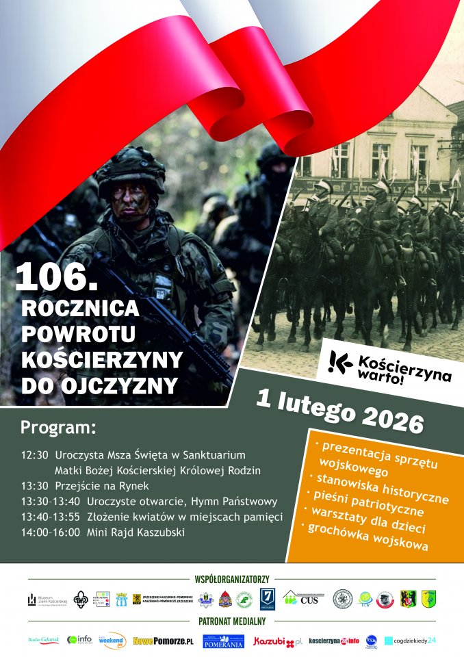 W najbliższą niedzielę (1.02.) Kościerzyna uczci 106 rocznicę powrotu miasta do Ojczyzny. Jak zapewniają organizatorzy, obchody będą miały charakter patriotyczny i rodzinny.