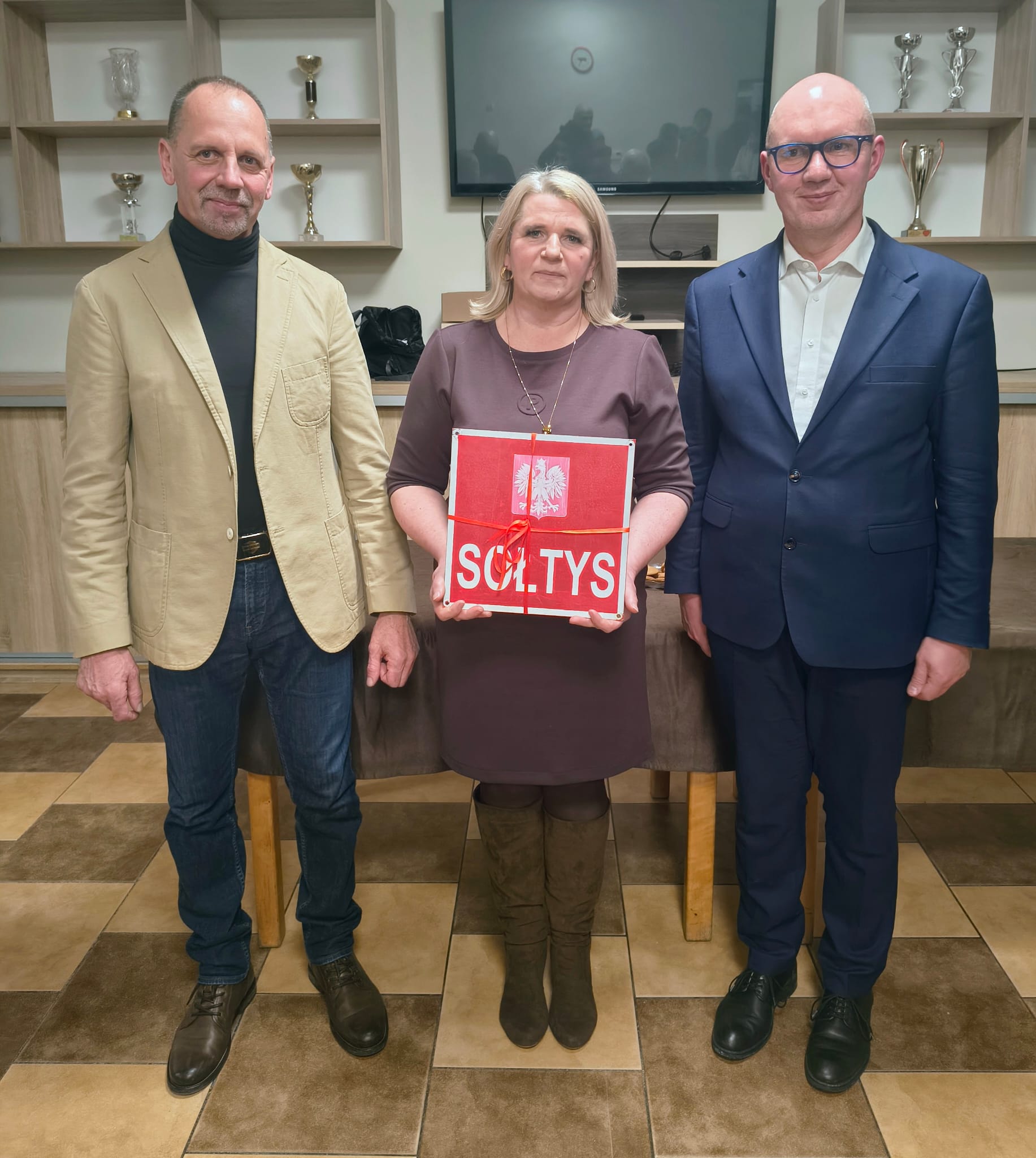 Od lewej: były sołtys Jarosław Wróblewski, nowa sołtys Arleta Iwicka oraz wójt gminy Kęsowo Radosław Januszewski. Fot. UG Kęsowo