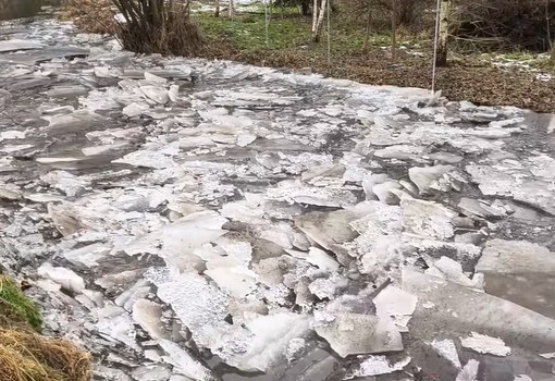 Nagromadzona kra ograniczała przekrój cieku i powodowała spiętrzenie wód i nastąpiło takie troszeczkę pojawienie się rozlewisk w obszarach sąsiadujących z ciekiem, ale nie zagraża mieszkańcom no i powiem szczerze, że natura nam sprzyja, bo już dzisiaj zaobserwowaliśmy, że zator lodowy został wypłukany przez rzekę i poskutkowało to obniżeniem poziomu wody już w strudze Kicz. Nie ma zagrożenia.