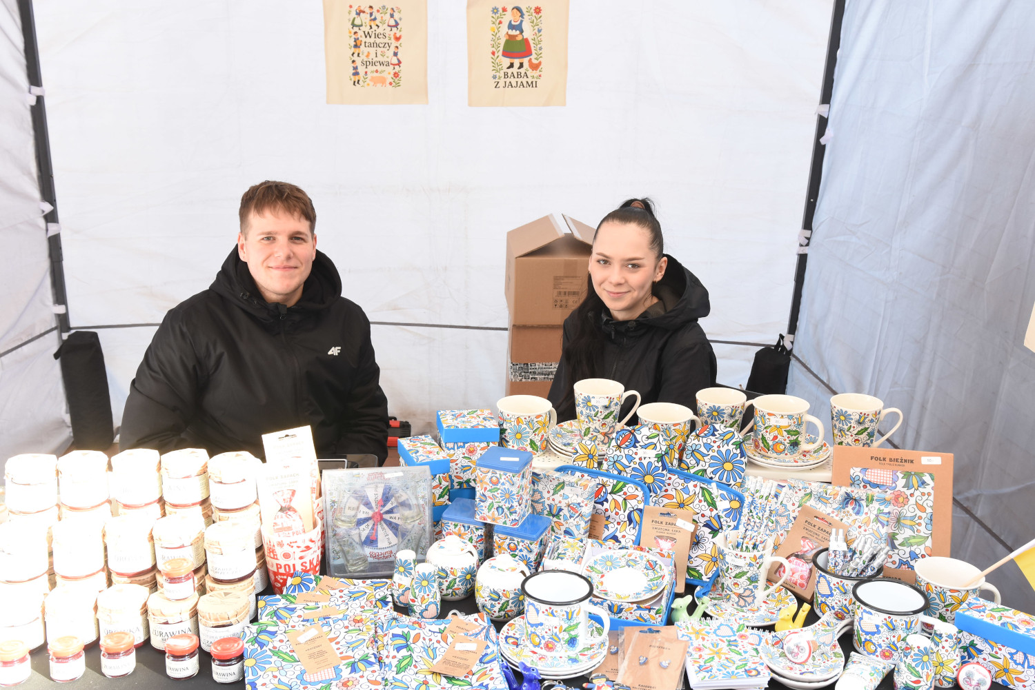 Na stoisku mamy swojskie wyroby, chlebek na zakwasie i nie tylko, białą kiełbasę, słoikową i pyszne ciasta. To przygotowałyśmy razem z koleżankami z koła, to są swojskie wyroby wszystkie, przygotowywane przez nas, przez członkinie koła gospodyń.
