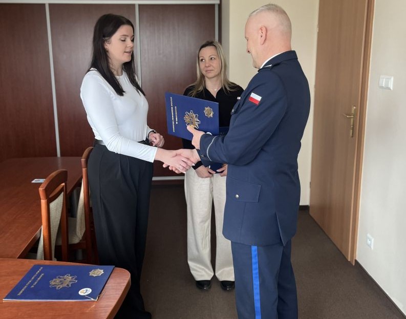 Zamknij oknoPracownice placówki pocztowej w Człuchowie Sylwia Nitz i Barbara Niziałek odebrały dziś (26.03) podziękowania od komendanta powiatowego policji Przemysława Bujaka. Szef człuchowskich stróżów prawa docenił je za czujność, która uchroniła seniorkę od straty 23 tys. zł.