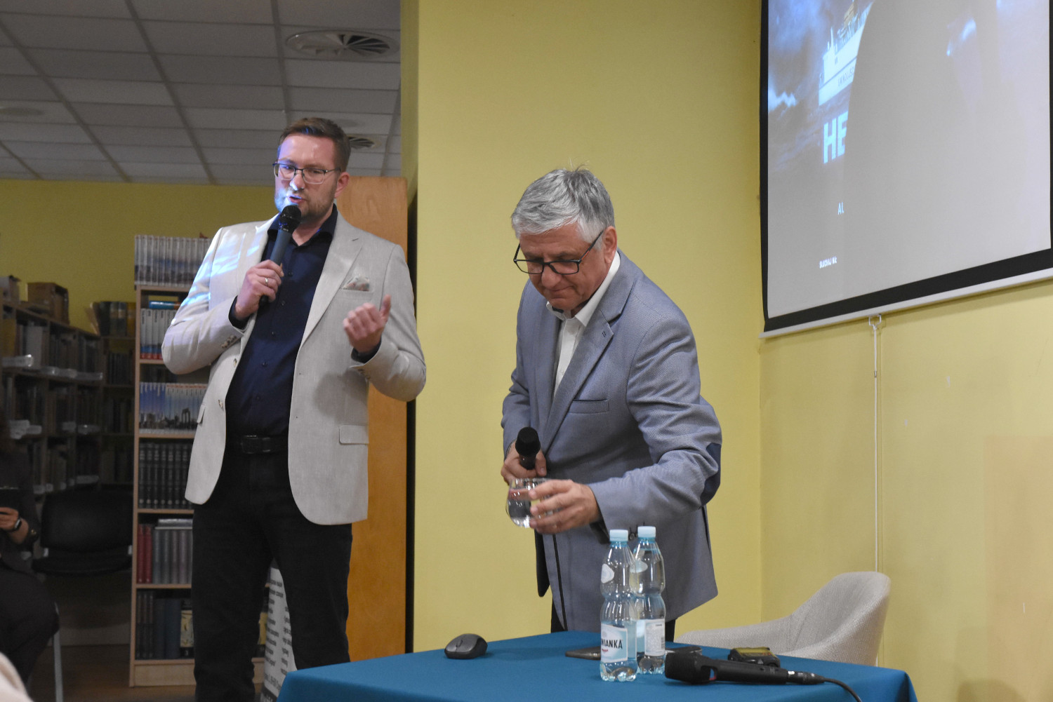 W czytelni biblioteki na pytania zebranych odpowiadał także ocalały drugi elektryk z Heweliusza Grzegorz Sudwoj. Odniósł się między innymi do procesu w Izbie Morskiej oraz kwestii innego statku, który znalazł się na kursie kolizyjnym z Heweliuszem.