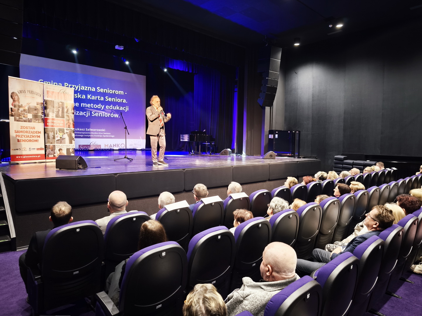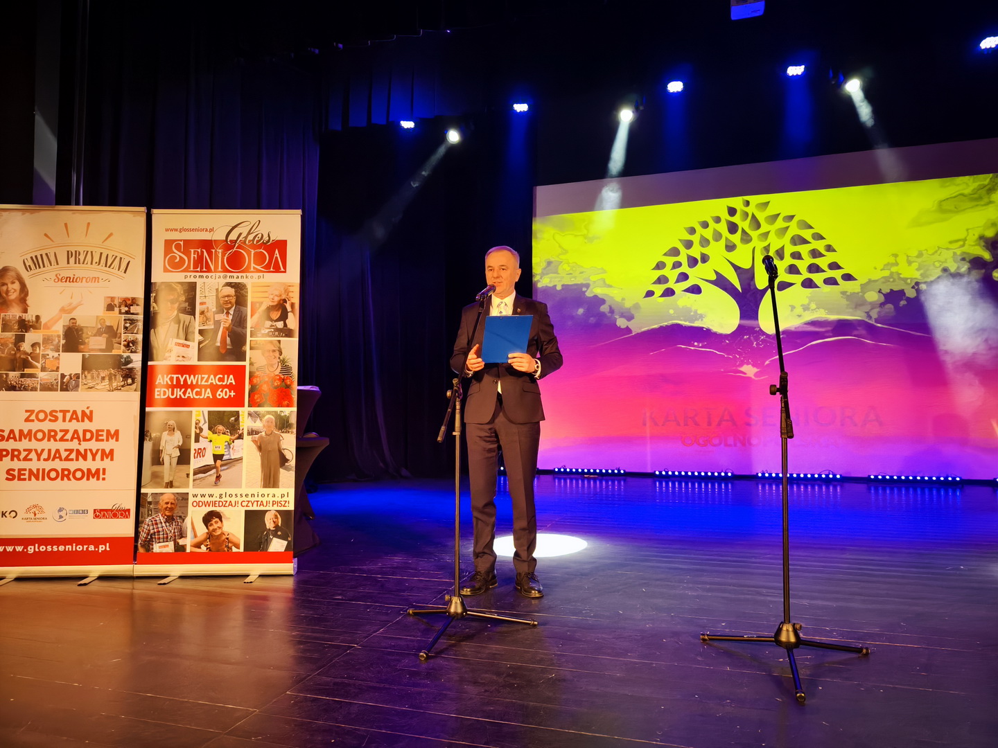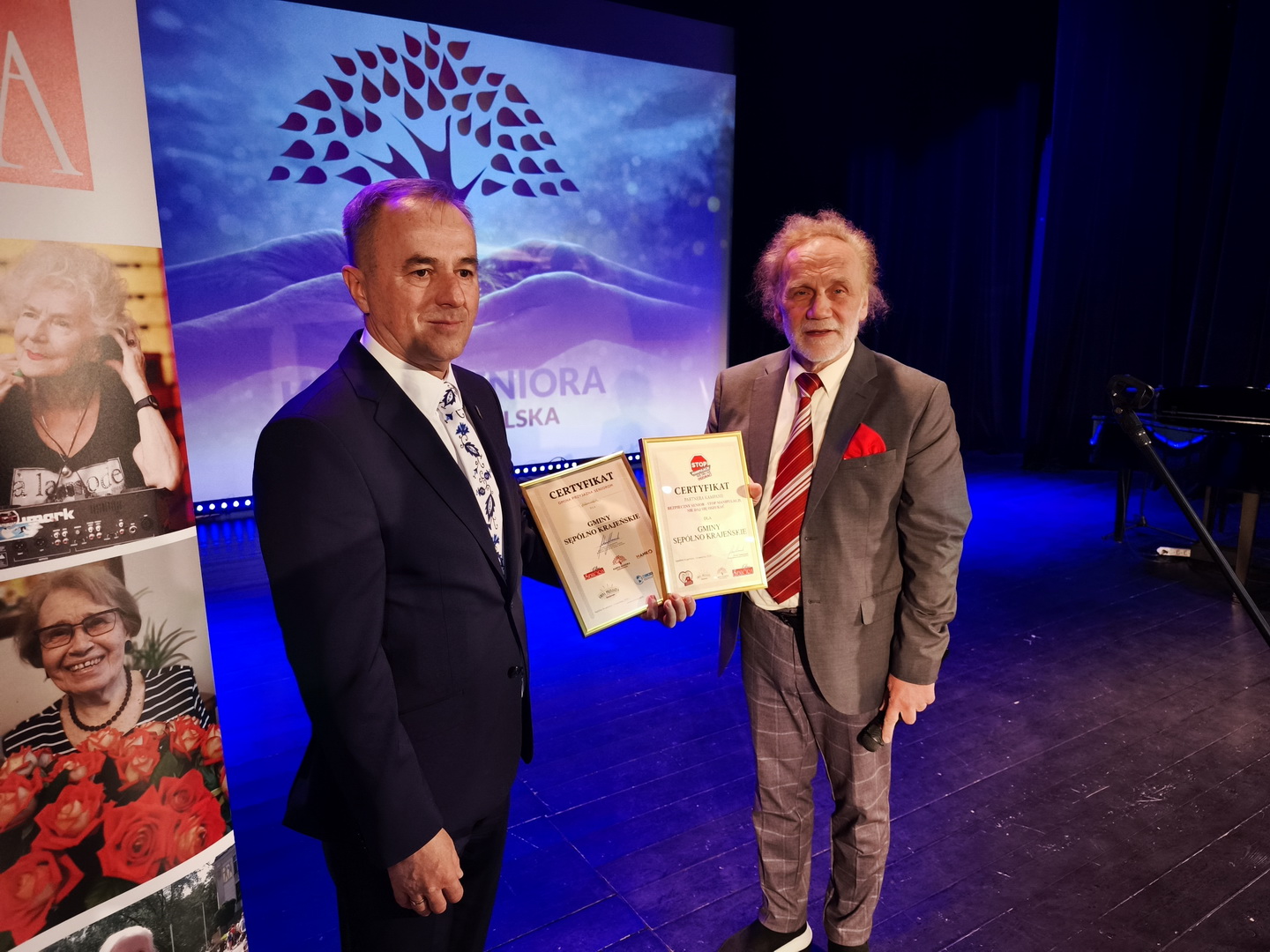 - Tutaj u państwa ten szczególny przypadek, że dwóch radnych się ,że tak powiem, włączyli w zdobywaniu firm, ale proszę państwa, to jest wasze zadanie domowe. 70% z tych firm, które prawie pięć i pół honorują ogólnopolską Kartę Seniora, to zorganizowali i moi, i wasi rówieśnicy. Teraz bym bardzo prosił pana burmistrza, chcę oficjalnie teraz wręczyć certyfikat "Gminy Przyjaznej Seniorom".