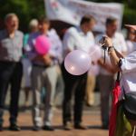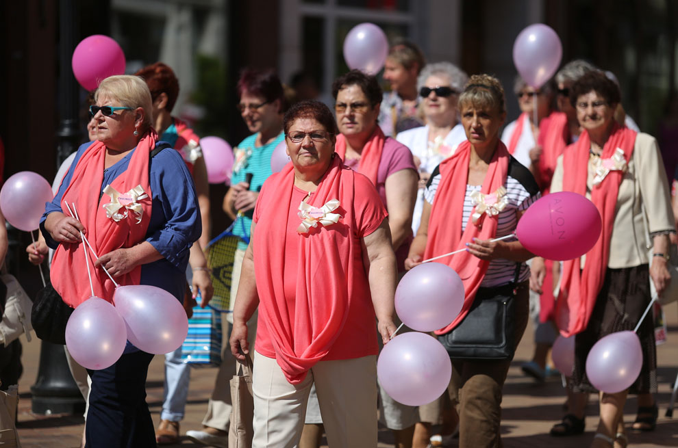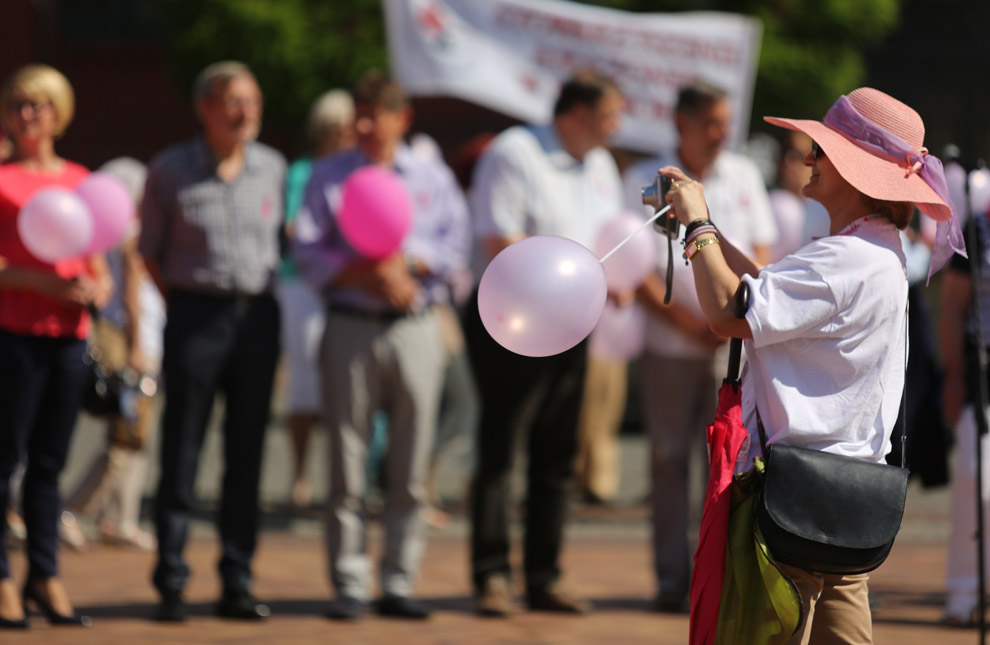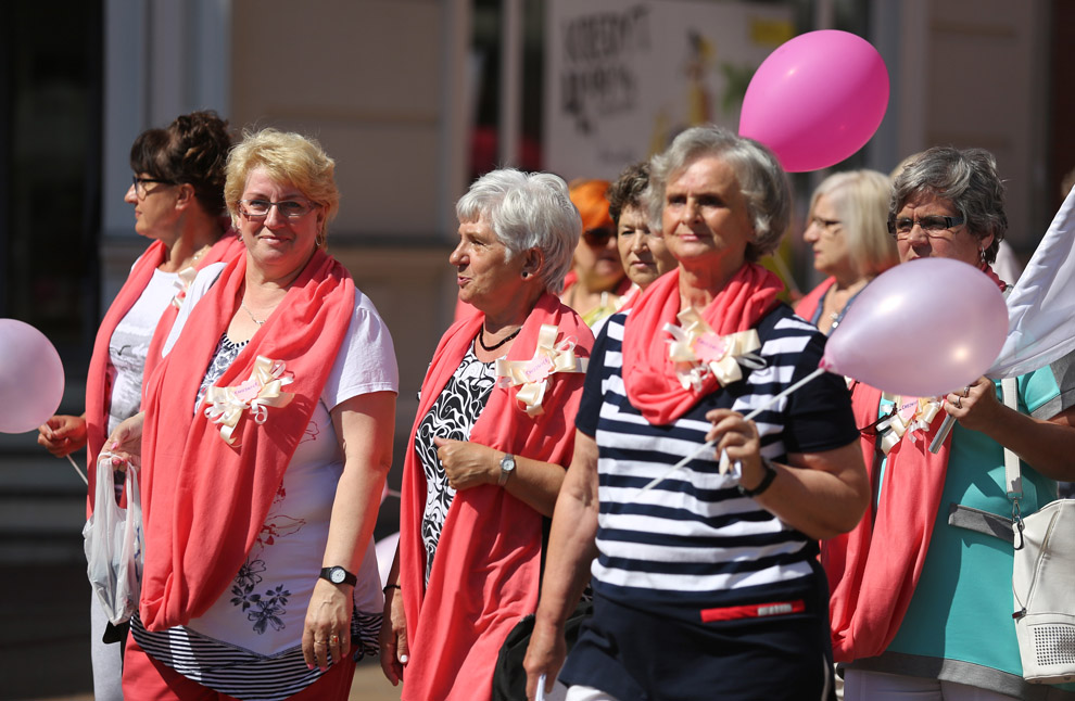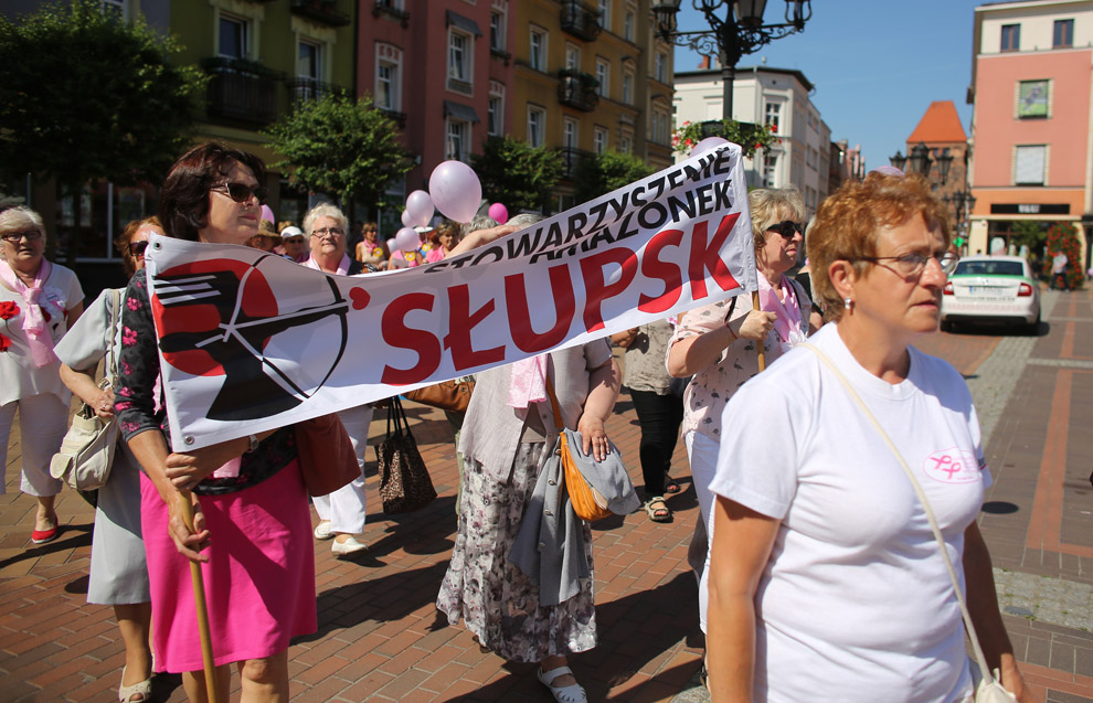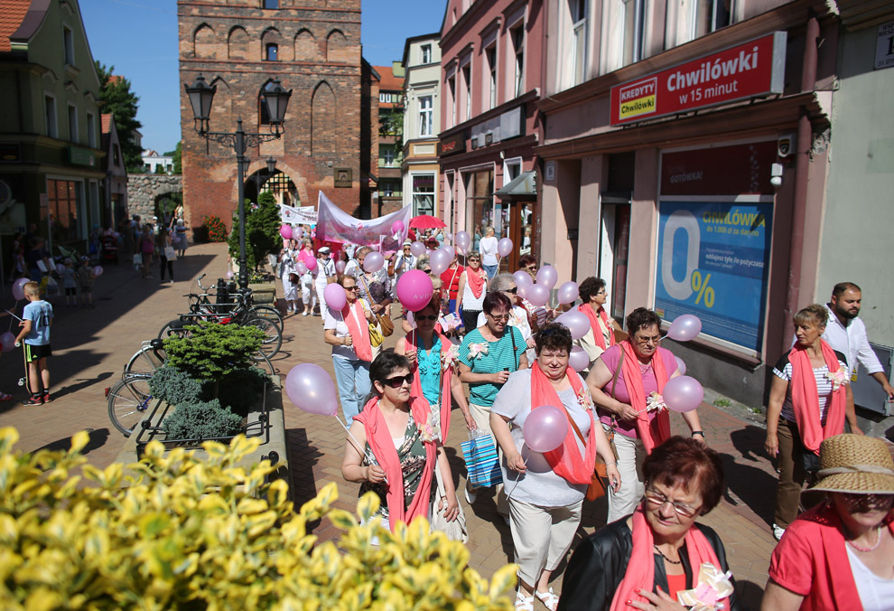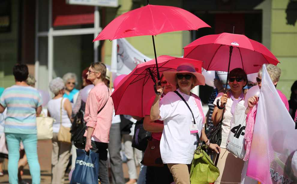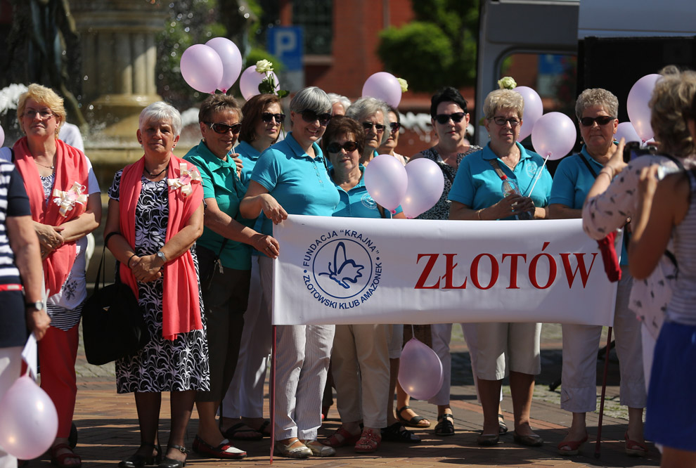 Walczymy z tym rakiem piersi. Dlatego bierzemy udział, zjeżdżamy się. Ja jestem w ogóle ze Słupska. Rak to nie wyrok można żyć. Wystarczy na nas spojrzeć jak my wyglądamy. Jesteśmy całą grupą, 17 osób tutaj przyjechało, od koleżanek dostałyśmy zaproszenie. My też zapraszamy, też robimy marsze imprezy i spartakiady.