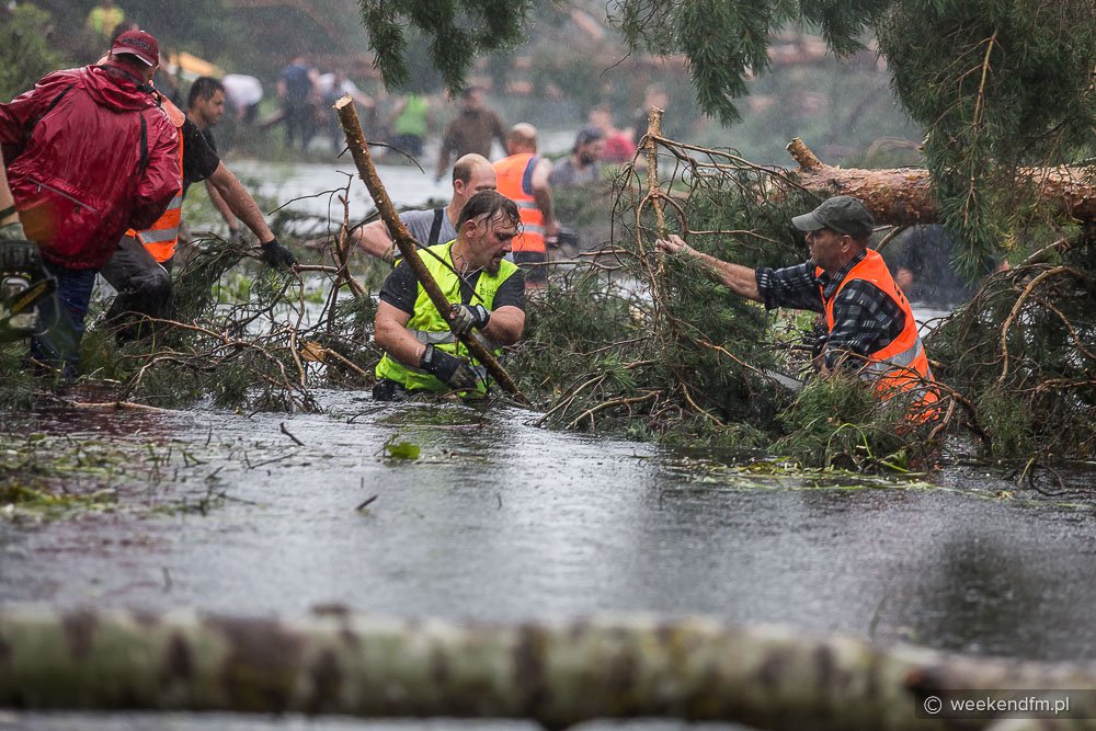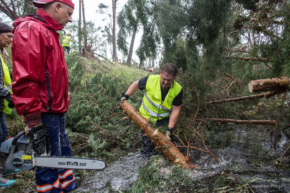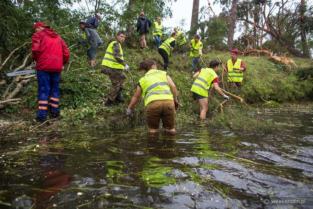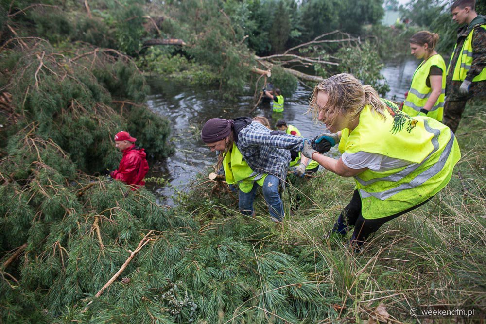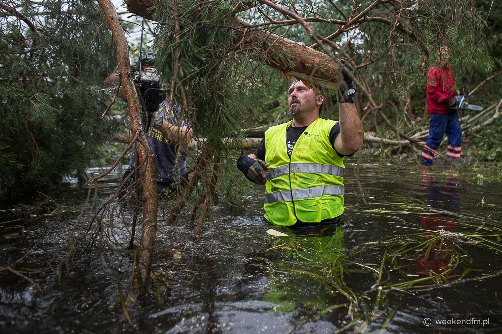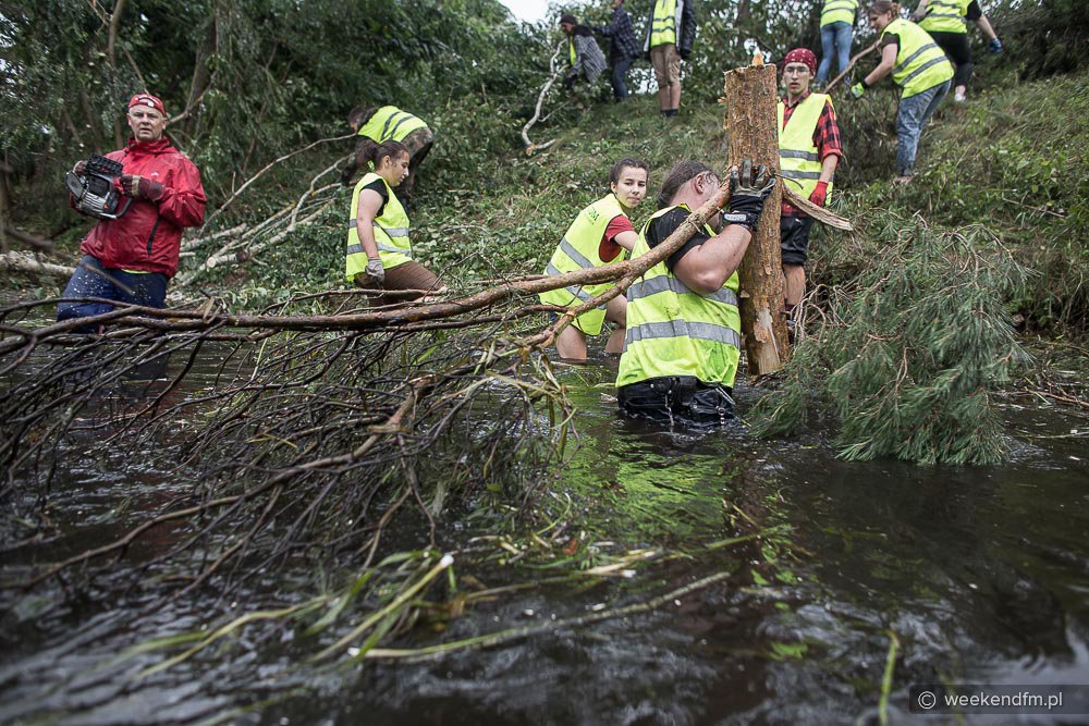 Przyjechali z całego kraju, stoją po pas w kanale Brdy. Piłują i wyciągają drzewa (FOTO, WIDEO)