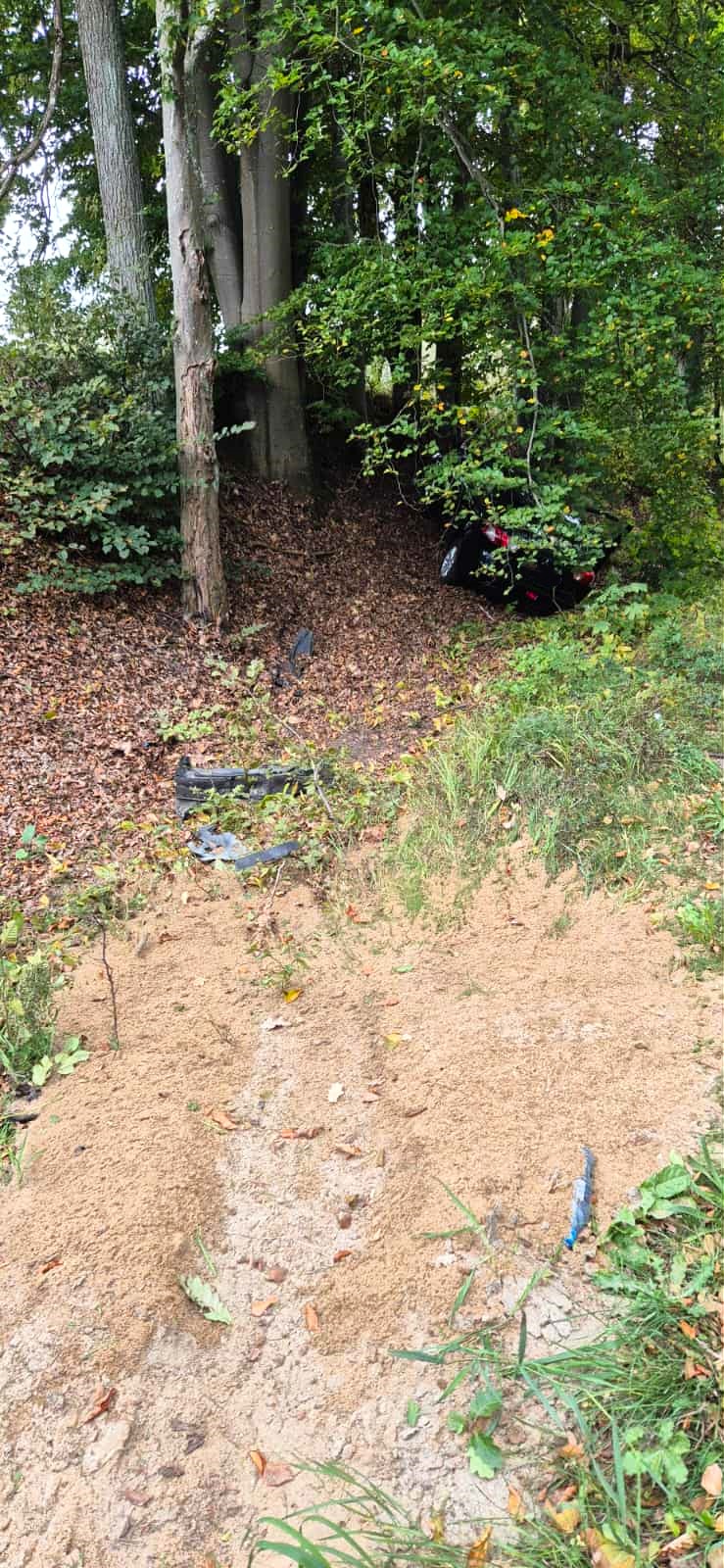 81 - latek kierujący mitsubishi wjechał w drzewo. Do groźnie wyglądającej kolizji, do doszło wczoraj (30.09.) na drodze wojewódzkiej 235 w Dziemianach: