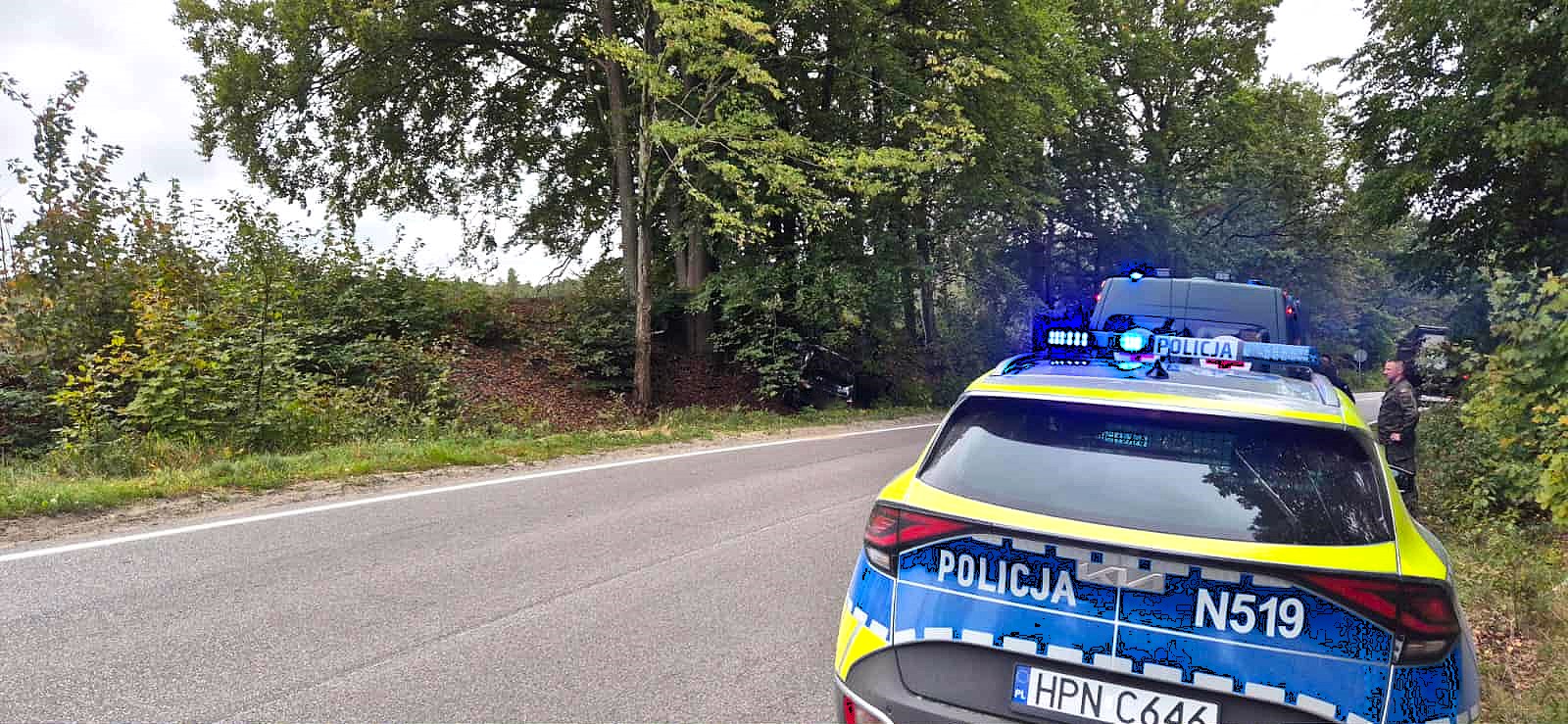 81-latek kierujący mitsubishi wjechał w drzewo. Mężczyzna nie odniósł poważniejszych obrażeń (FOTO)