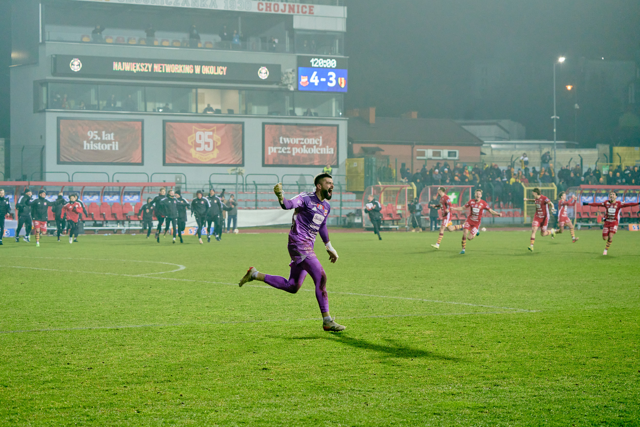 Sensacyjna wygrana Chojniczanki! Nasz drugoligowiec awansował do ćwierćfinału Pucharu Polski, wyrzucając z rozgrywek ekstraklasową Koronę Kielce. Decydujące w dzisiejszym (4.12) spotkaniu były rzuty karne, w których chojniczanie byli bezbłędni i wygrali 4:3.