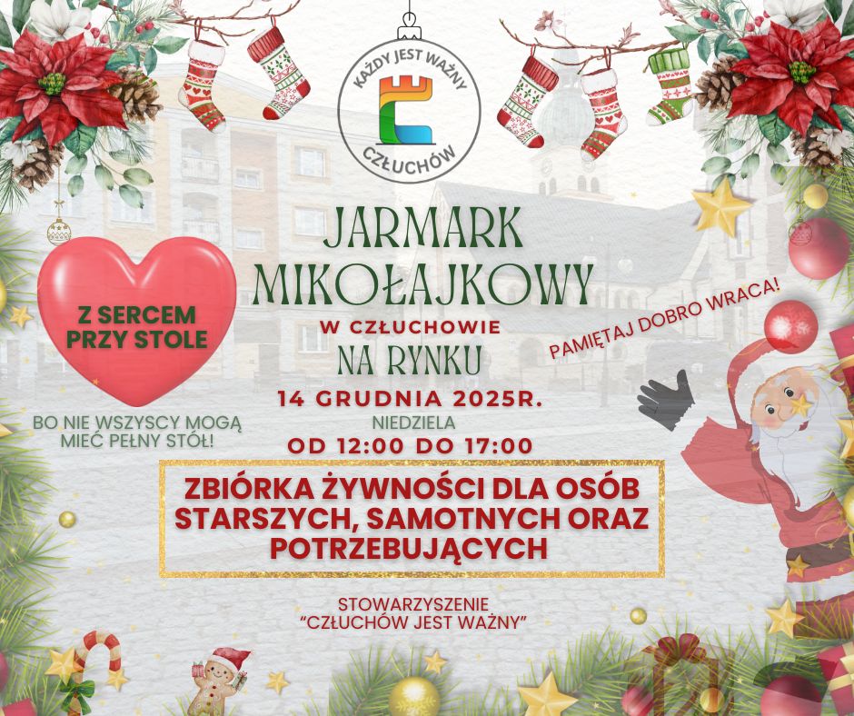 W nidzielę (14.12.) też zbiórka prowadzona będzie na Jarmarku Mikołajkowym w Człuchowie. Produkty można przynosić na stoisko Stowarzyszenia "Człuchów Jest Ważny" w godzinach 12.00-17.00.