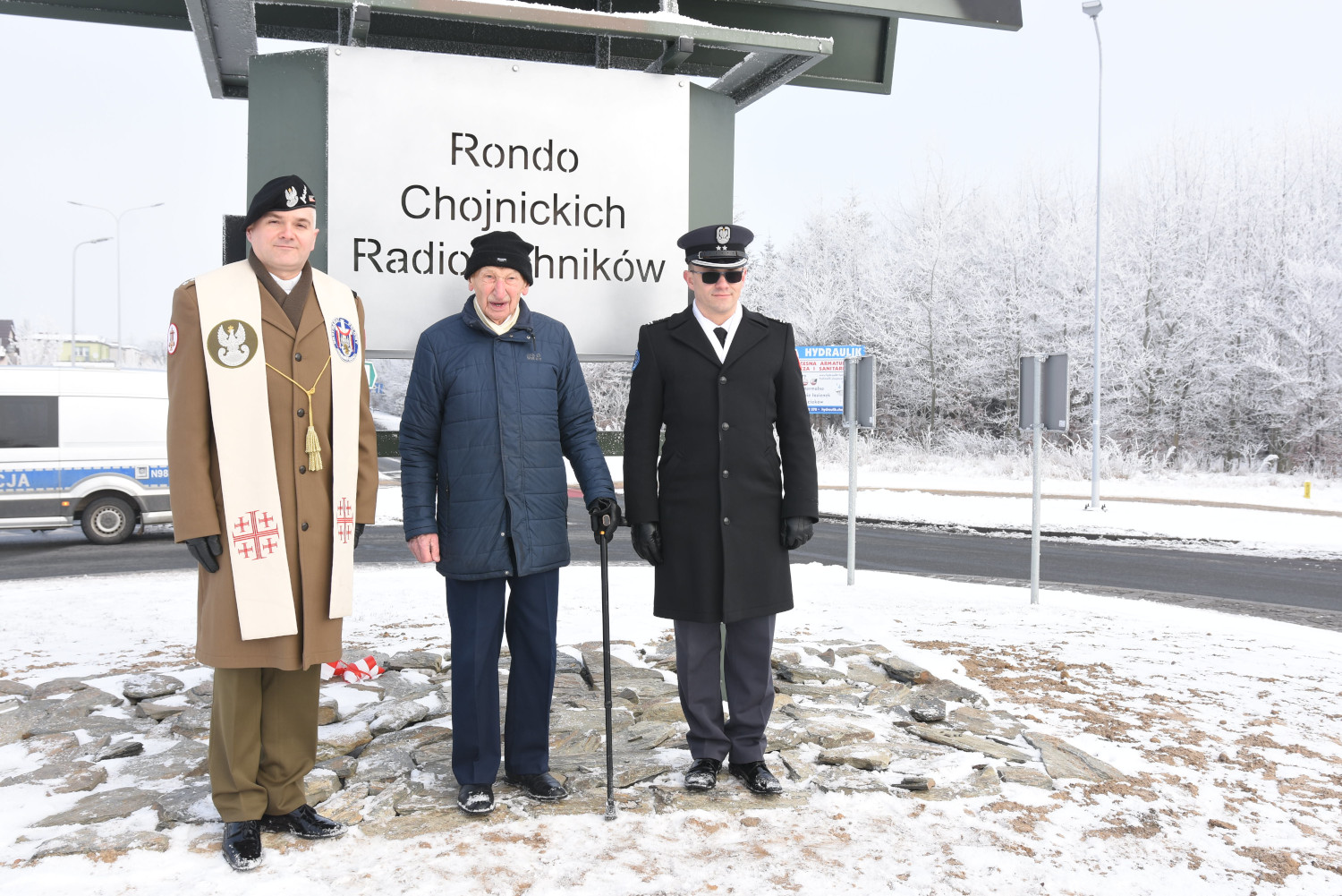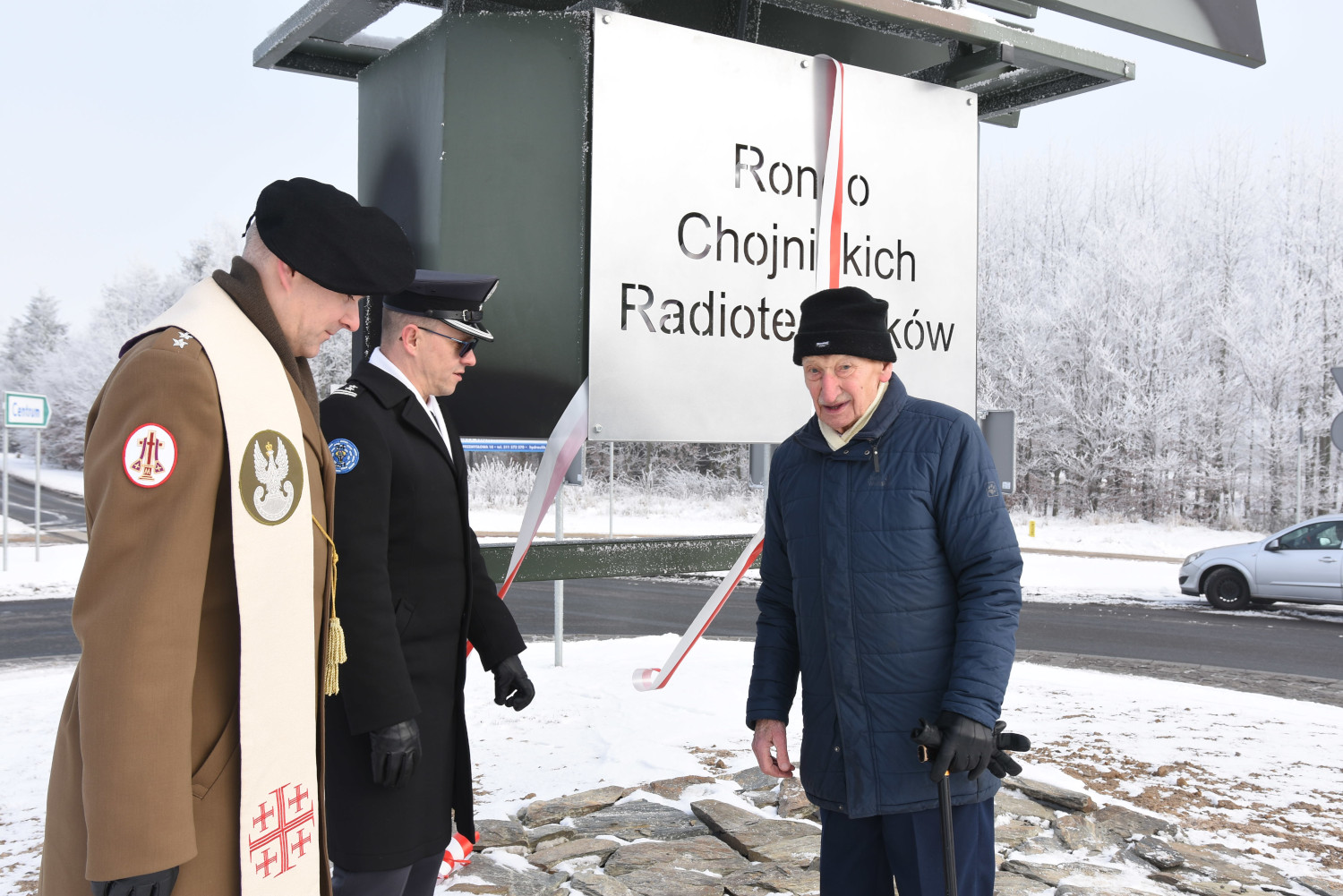 Rondo u zbiegu drogi wojewódzkiej 212 i ulicy Sępoleńskiej w Chojnicach symbolicznie oddane do użytku. Uroczystość poświęcenia Ronda Chojnickich Radiotechników odbyła się dzisiaj (8.01) w południe. Była połączona z wojskowym apelem, na który przybyli między innym samorządowcy, przedstawiciele służb mundurowych i sponsorzy, Gościem honorowym był podpułkownik Kryspin Okólski, który od 1974 roku dowodził ówczesnym 22 Batalionem Radiotechnicznym. Podziękowania do zebranych skierował obecny dowódca 34 Chojnickiego Batalionu Radiotechnicznego.