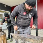 – Kujemy serduszka, mamy prosty pręcik stalowy, rozgrzewamy go do temperatury ok. 950 stopni, zawijamy na rogu, wyklepujemy na bitni i jest gitowe serduszko, zapraszamy wszystkich - mówi kowal Jakub Rygiel.