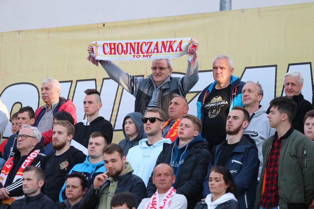 Chojniccy kibice zostali wynagrodzeni za cierpliwość, bo zwycięska bramka padła dziś dopiero na kilka minut przed końcem spotkania, po samobójczym trafieniu Michała Gładysza.