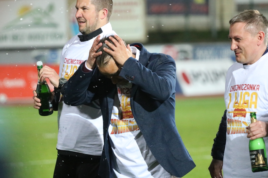 Mamy to, co chcieliśmy. Zrobiliśmy to, o co od dwóch lat walczyliśmy. Wróciliśmy na to miejsce, na które myślę, że zasługujemy, pod względem miasta, organizacji, kibiców i drużyny, tak że musimy teraz wziąć się znowu do roboty. Dzisiaj świętujemy, a za chwilę wracamy i budujemy nową Chojniczankę pierwszoligową.