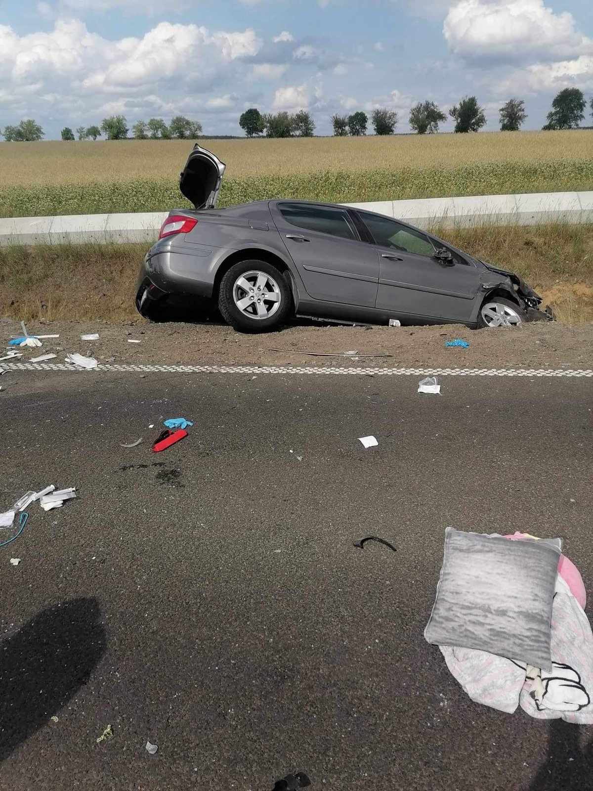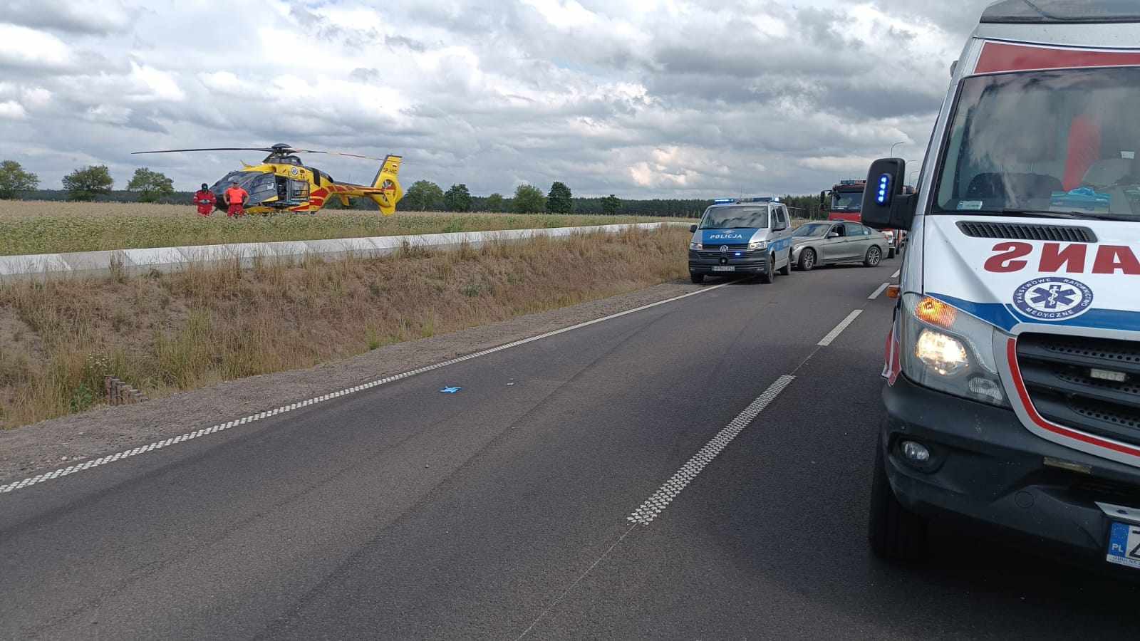 Zderzenie trzech samochodów osobowych, po rozpoznaniu przez dowódcę ustalono, że w zdarzeniu brało udział 9 osób, w tym 5 dorosłych 4 dzieci. Wszyscy są poszkodowani, ale 8 z nich zostanie zabranych przez ZRM do szpitala. Działa 15 zastępów, 8 karetek i 3 śmigłowce Lotniczego Pogotowia Ratunkowego. Droga na chwilę obecną jest zablokowana w obu kierunkach