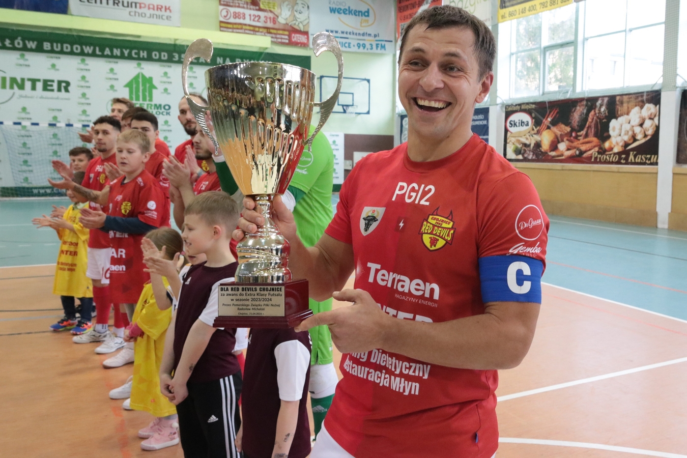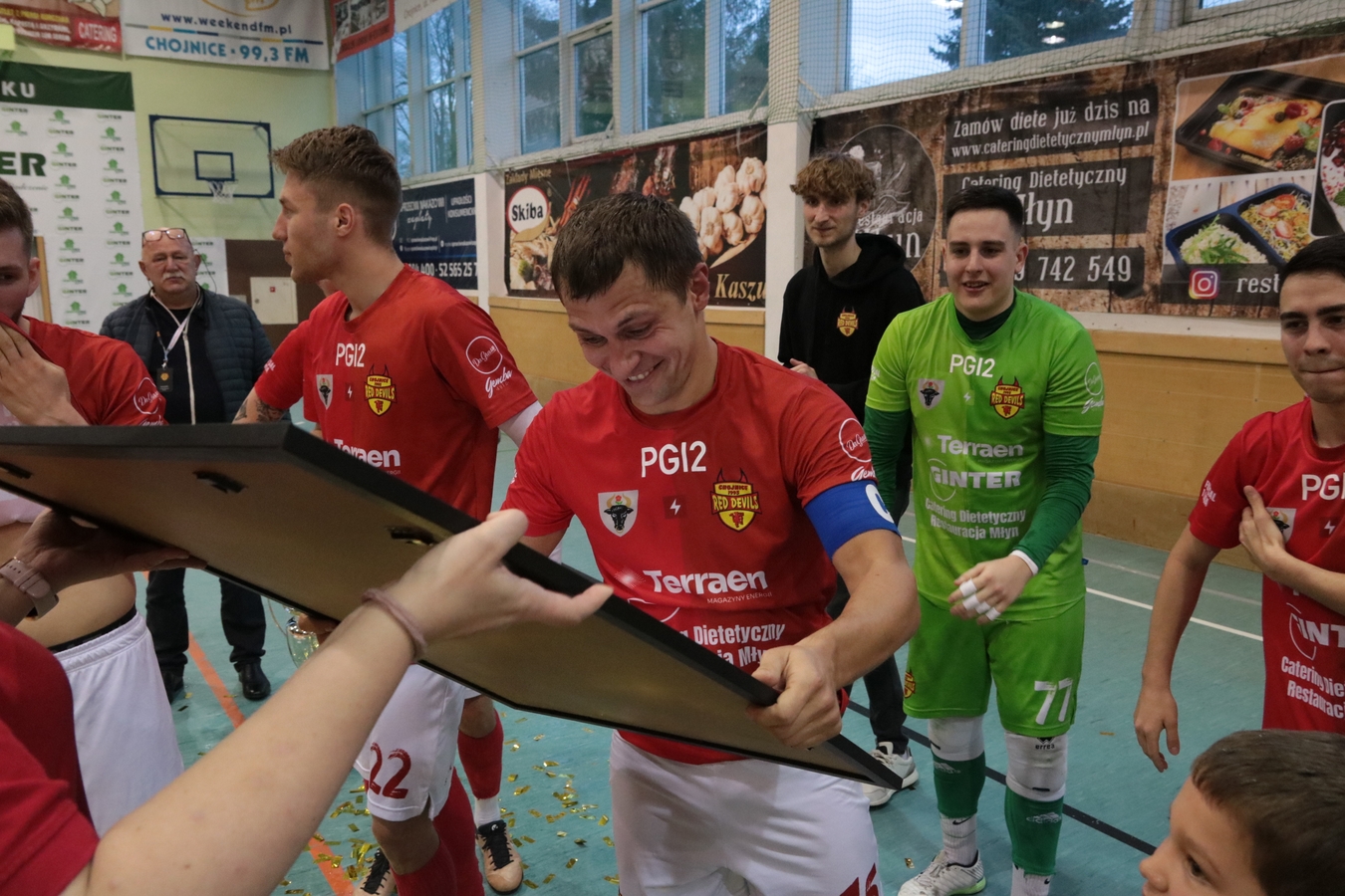 Trzynastym zwycięstwem z rzędu przypieczętowali udany sezon w I lidze futsaliści Red Devils Chojnice. Choć od tygodnia byli już pewni awansu do Futsal Ekstraklasy, w ostatniej kolejce rozgrywek pokonali Team Lębork 6:3. Po dwie bramki w futsalowych derbach Pomorza zdobyli Jefferson Rocha i Vladyslav Tkachenko, a po jednej Andrii Yelishev i Giovanni Paesano.