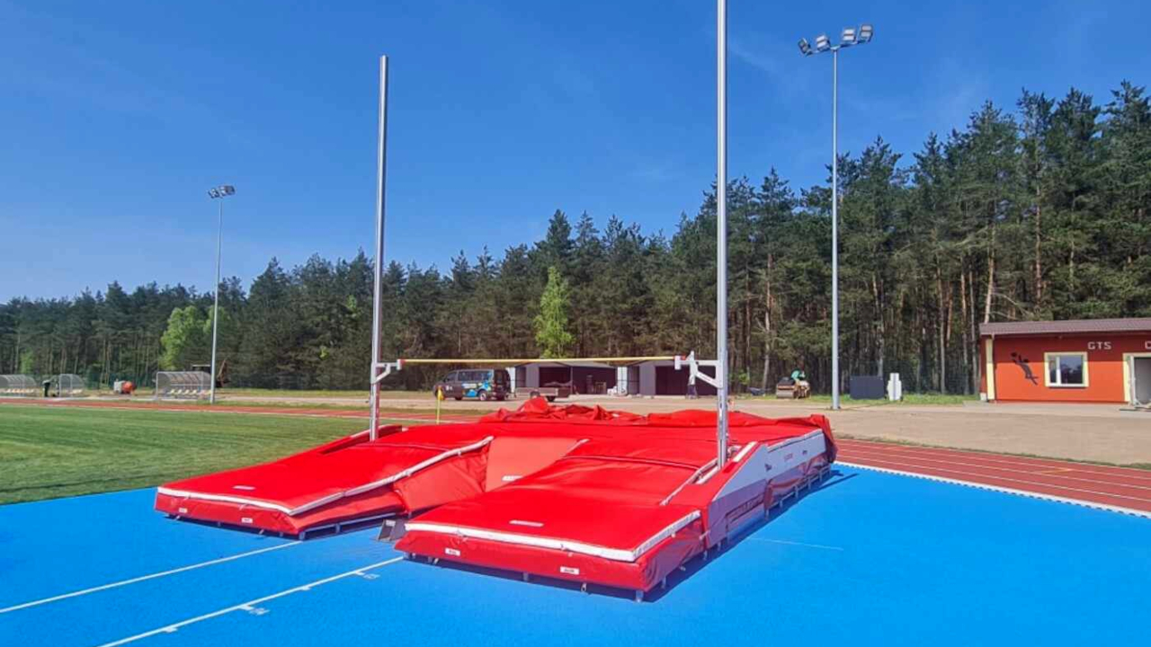 W tej części lekkoatletycznej jest bieżnia czterotorowa 400-metrowa. Są instalacje na skok w dal, wzwyż, rzut kulą, skok o tyczce i nawet mamy miejsce na rzut młotem. Tak że jeśli chodzi o tę część lekkoatletyczną jesteśmy przygotowani, możemy urządzać zawody o randze nawet myślę że wojewódzkiej.