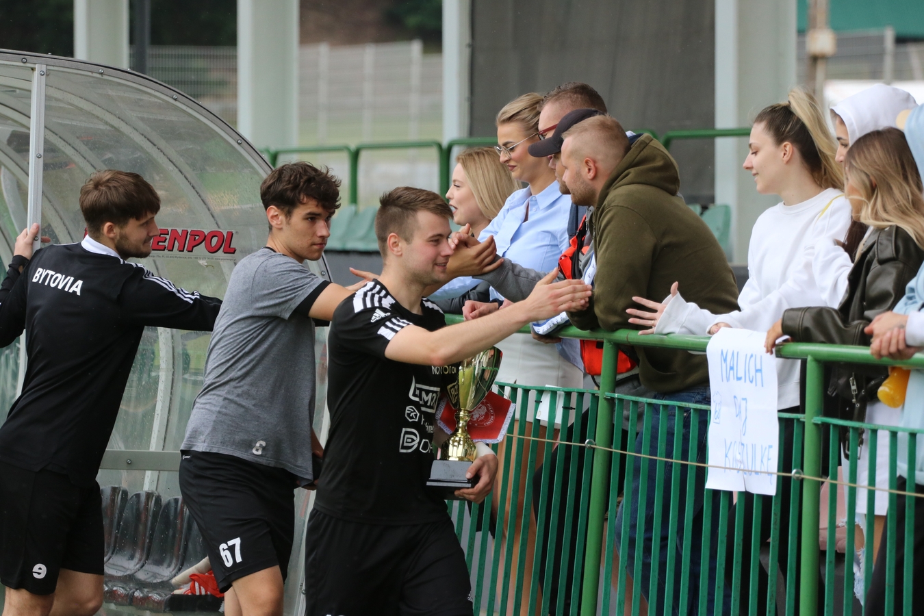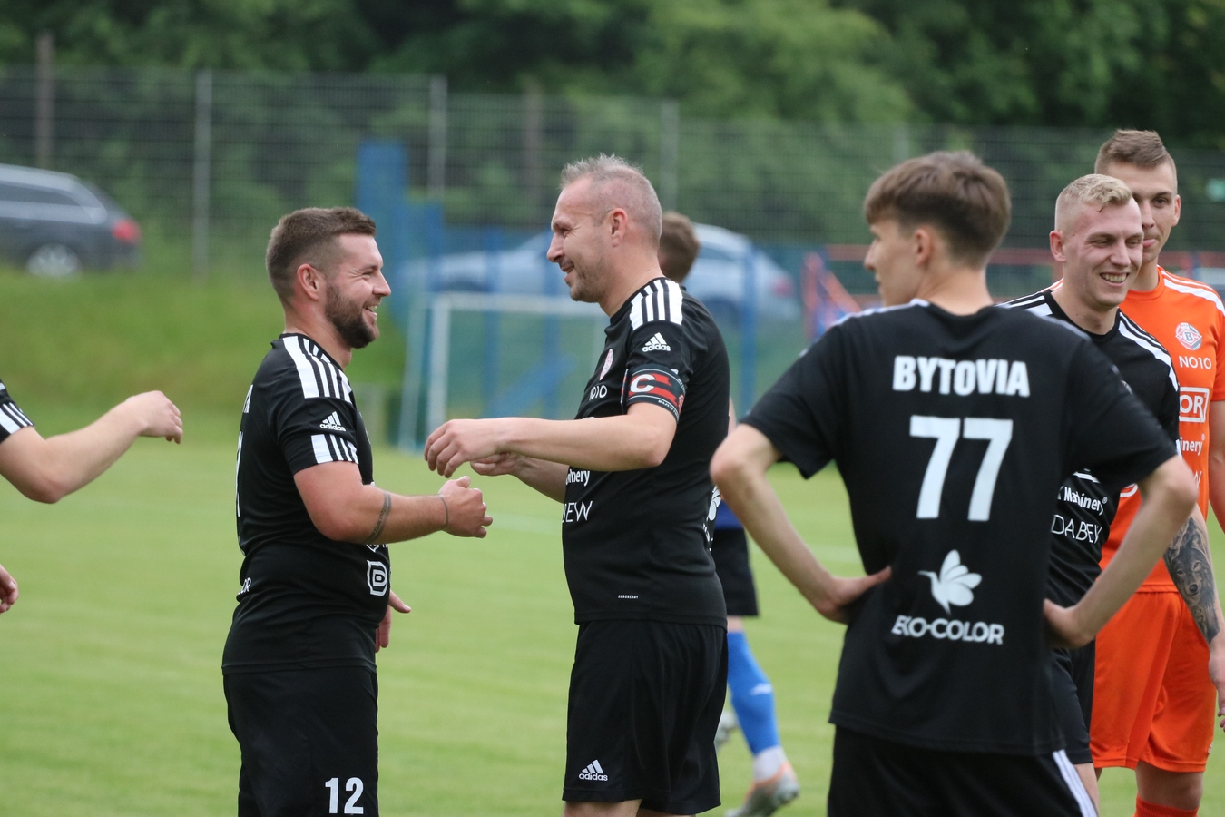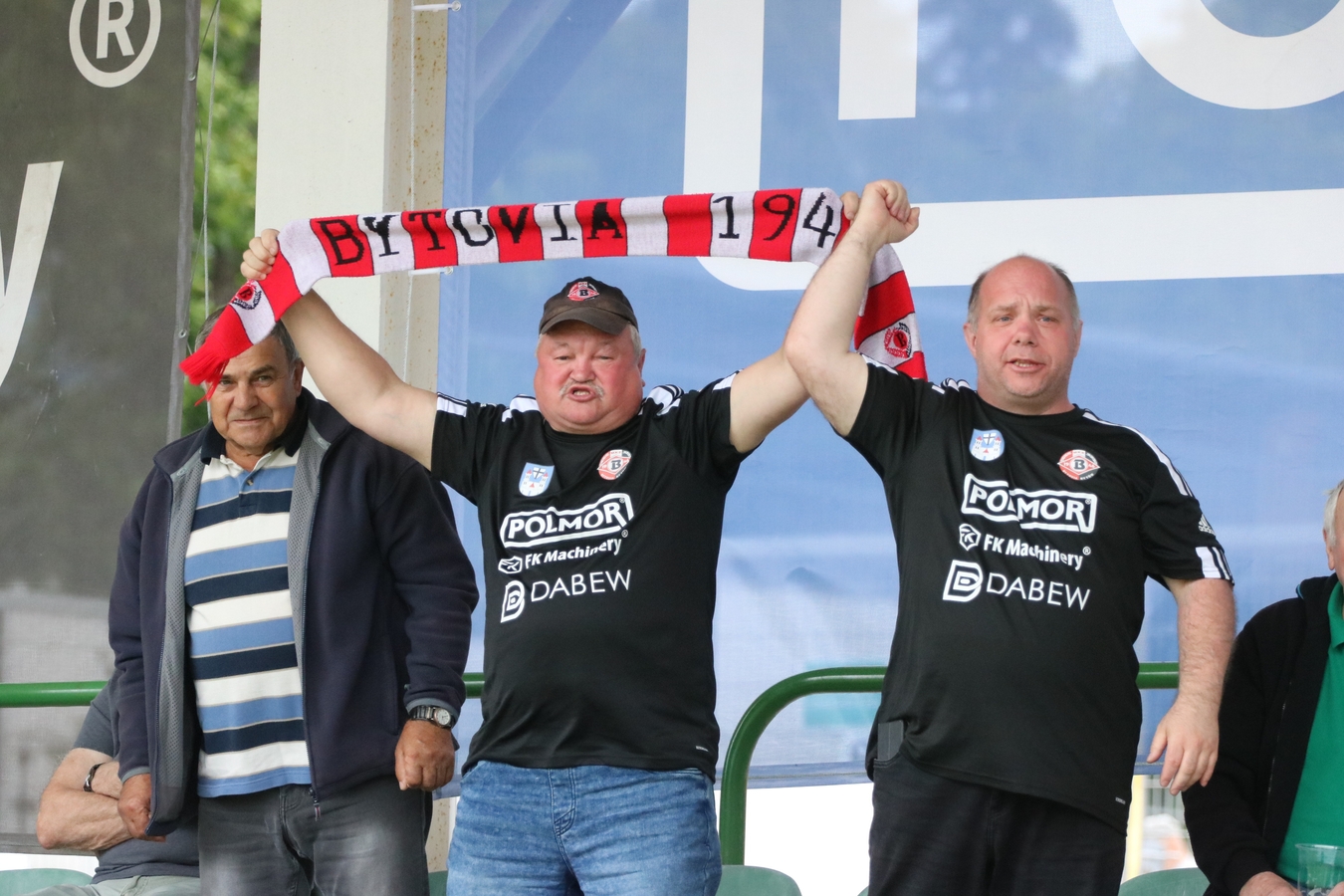 Przed wczorajszym spotkaniem członek zarządu Pomorskiego Związku Piłki Nożnej Paweł Kryszałowicz wręczył drużynie puchar za awans. Były też podziękowania dla zawodników, którzy przekroczyli też barierę 100, 200, a w przypadku Tomasza Mielewczyka – 300 meczów w Bytovii. Adam Gross odebrał z kolei statuetkę za króla strzelców okręgówki. Było też wspólne świętowanie awansu przez pierwszą drużynę, rezerwy i juniorów, którzy również wygrali swoje rozgrywki.