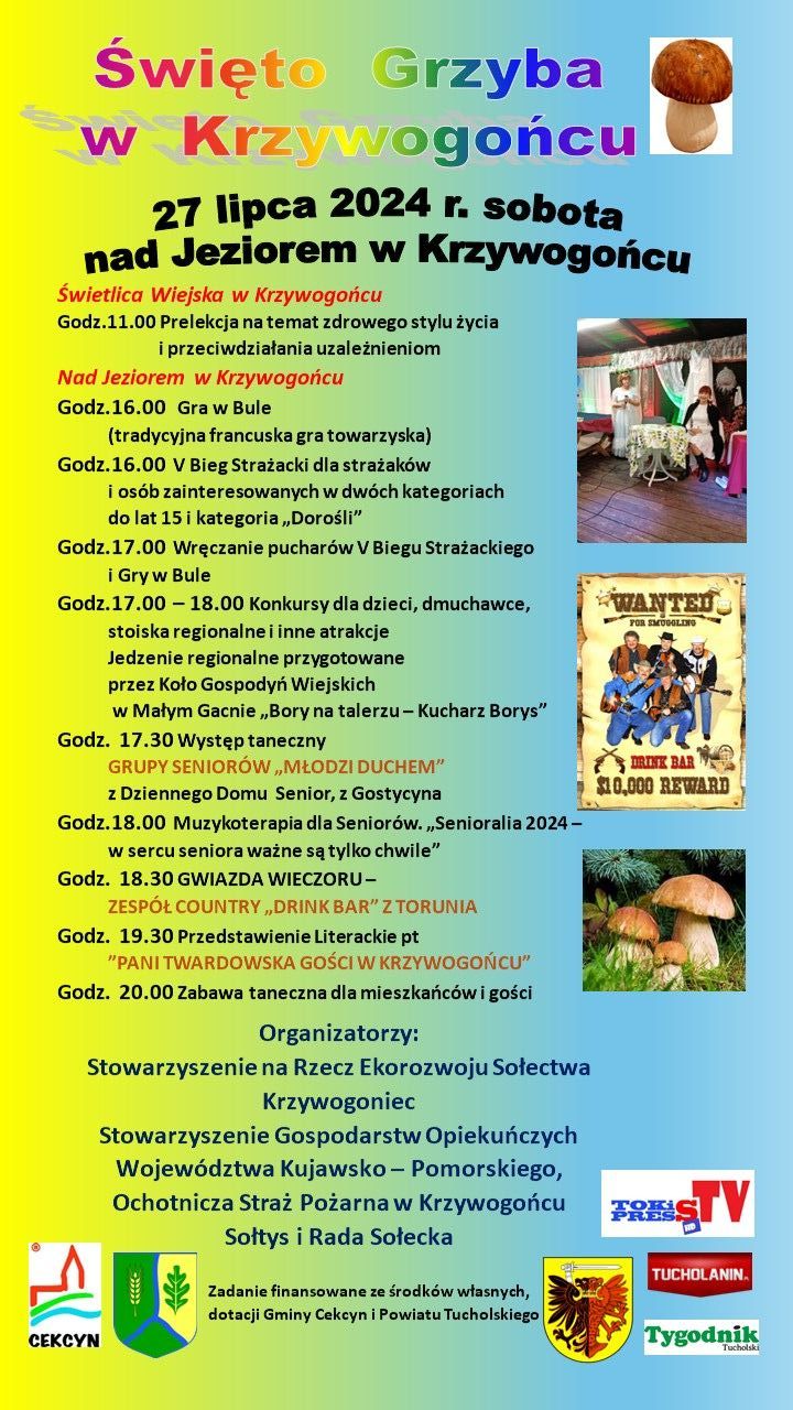 Ta impreza ma już 20-letnią tradycję i jest organizowana z myślą o dobrej zabawie i promocji. Dziś (27.07.) w gminie Cekcyn kolejna odsłona "Święta grzyba w Krzywogońcu".